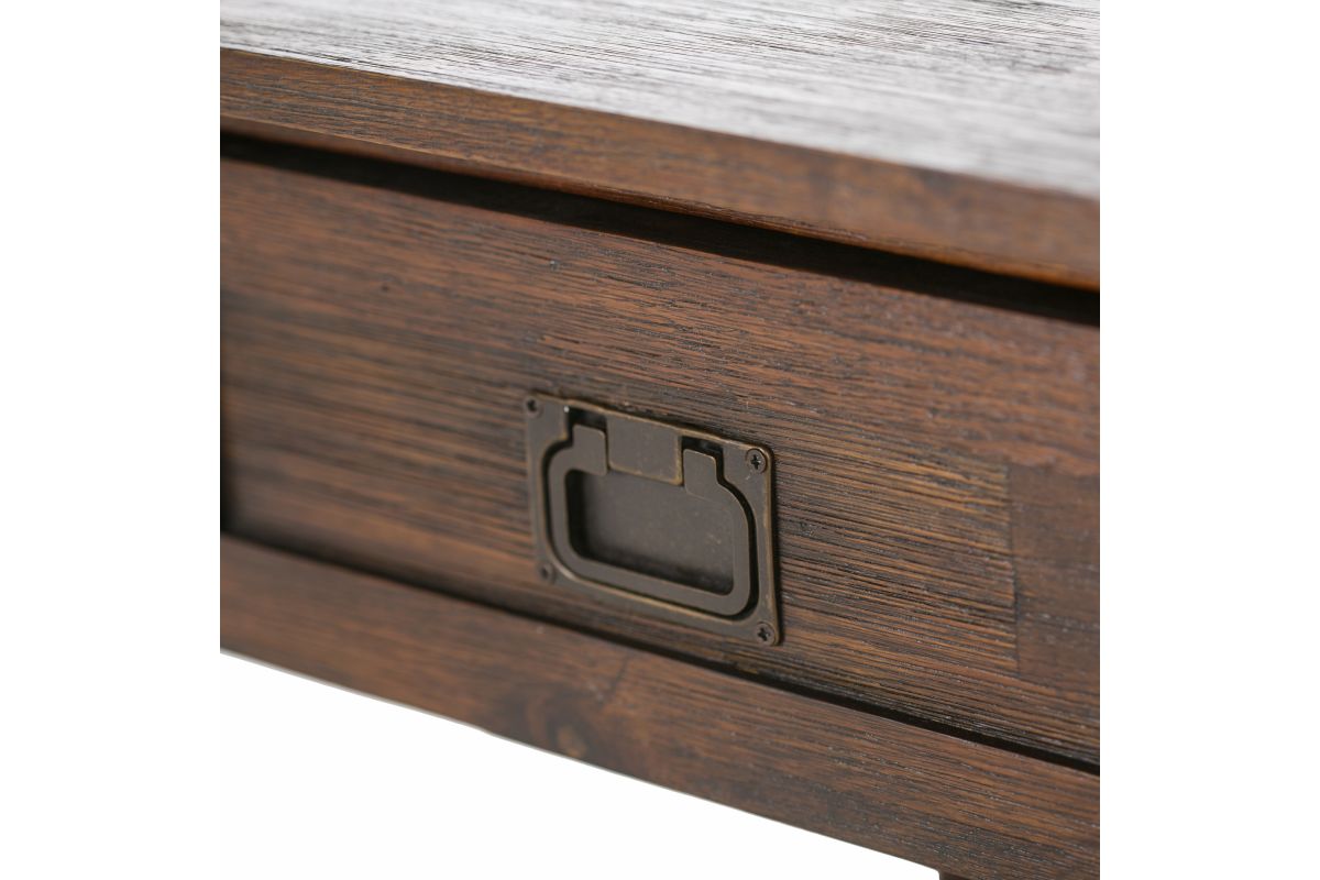 - Hand-finished with a Distressed Charcoal Brown stain and a protective NC lacquer coating to accentuate and highlight the grain and the uniqueness of each piece of furniture