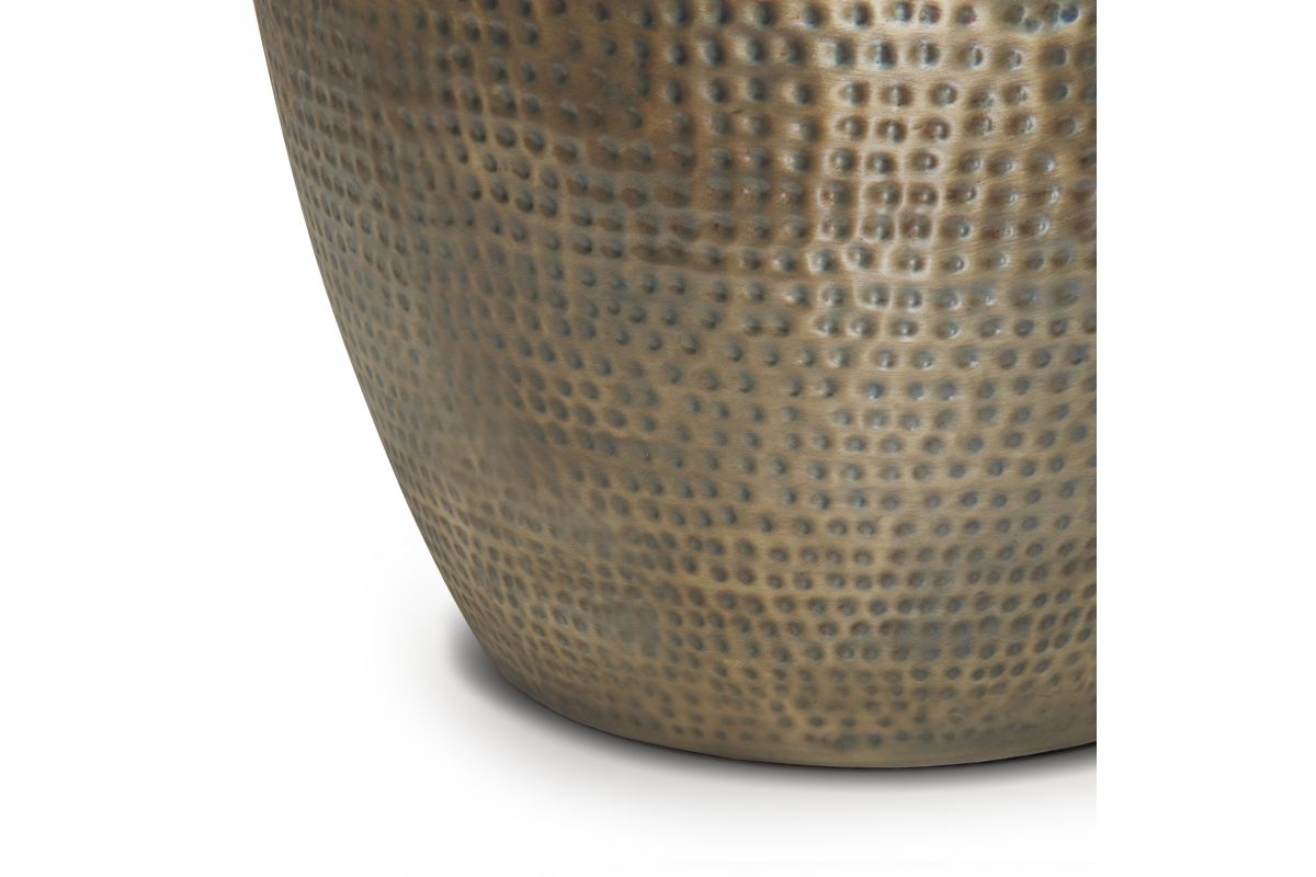 - Features popular drum shape with hand hammered textured detail