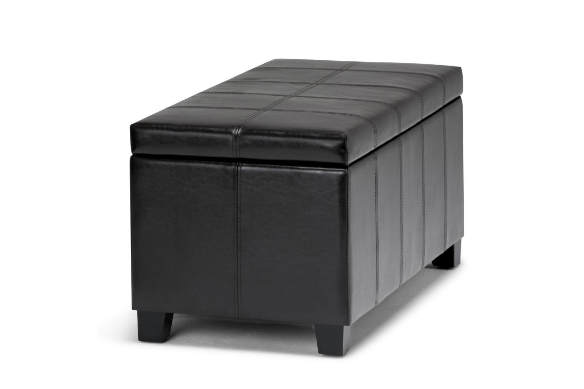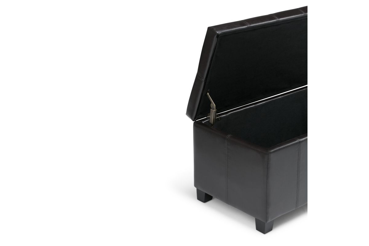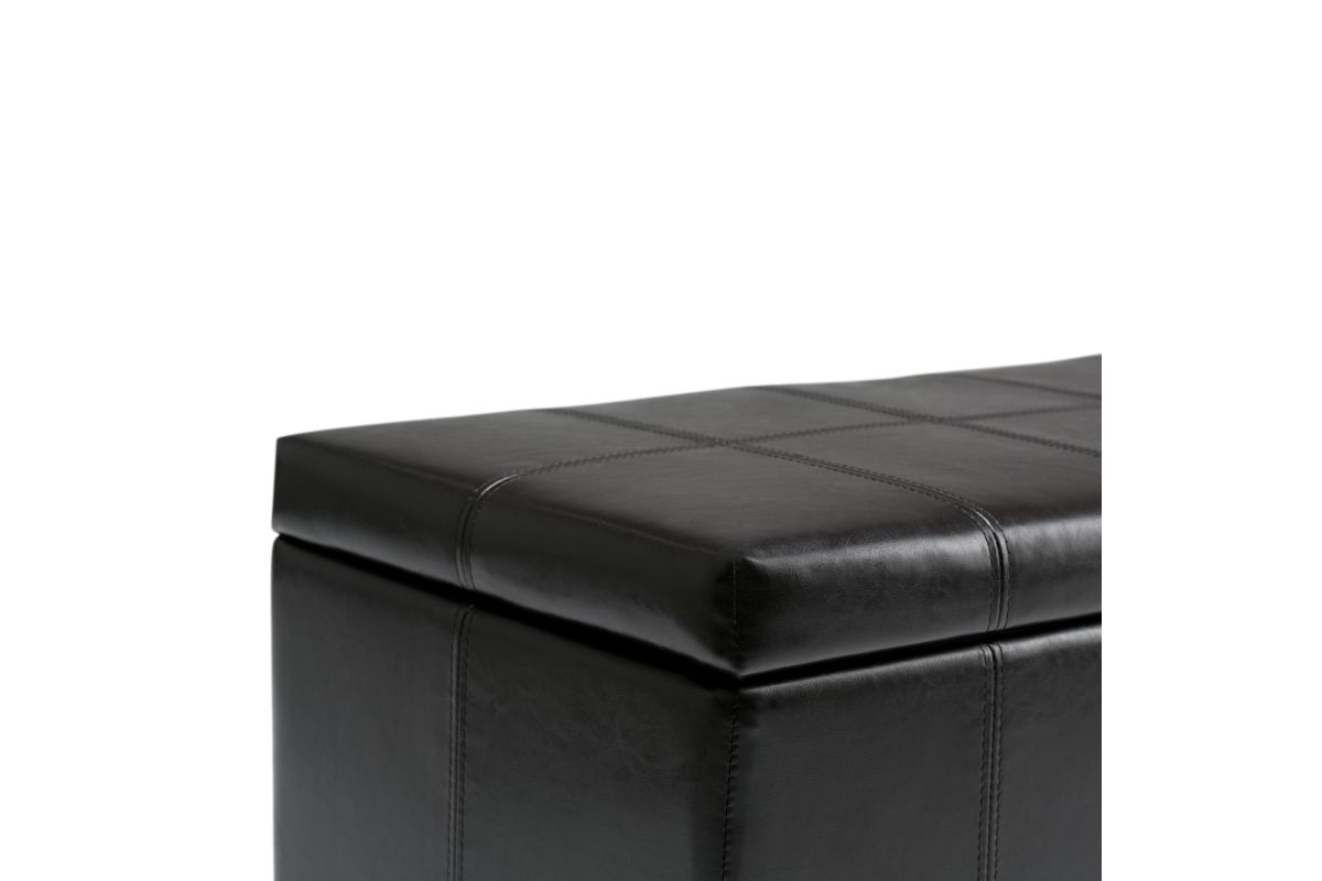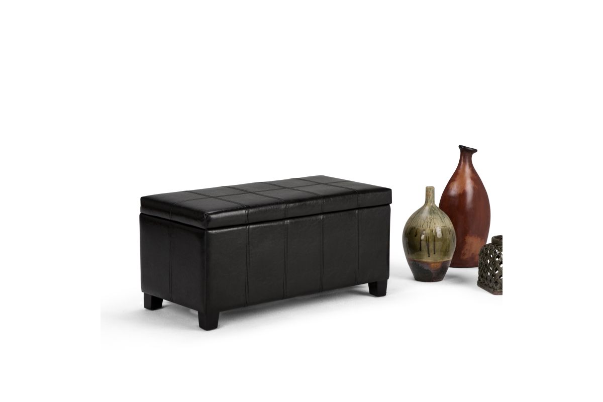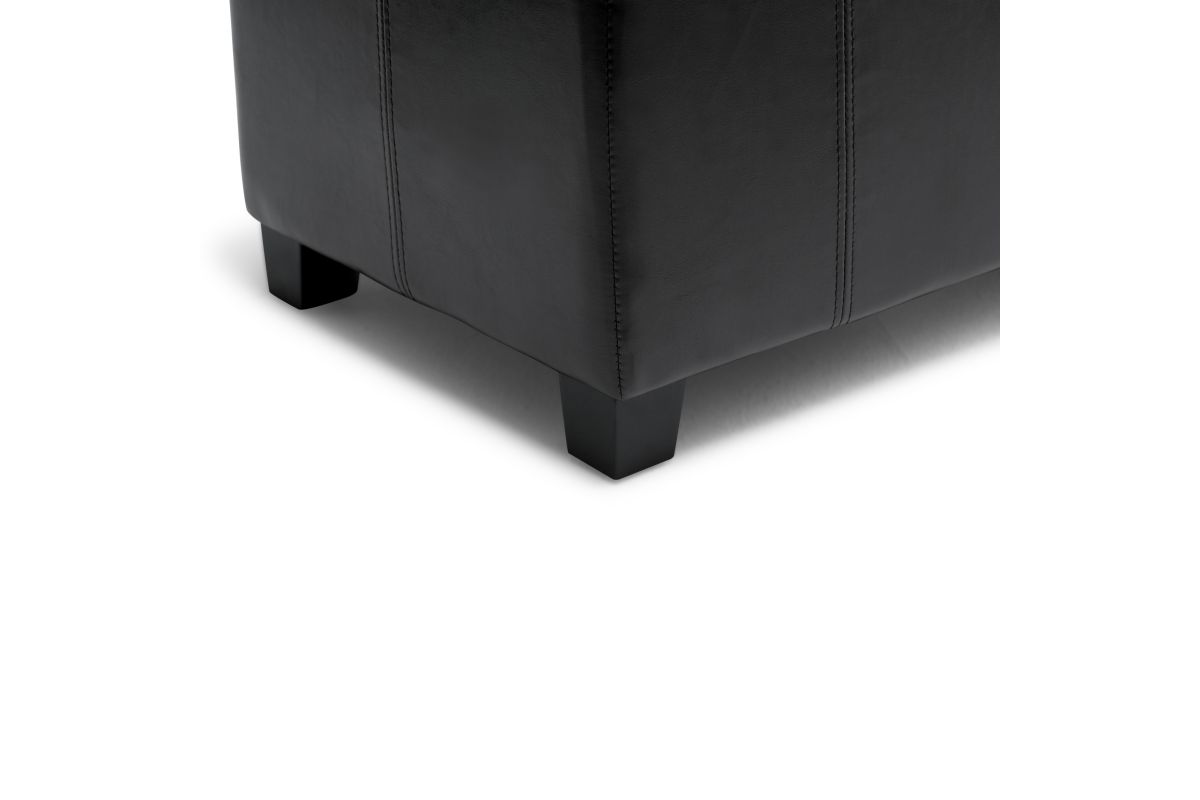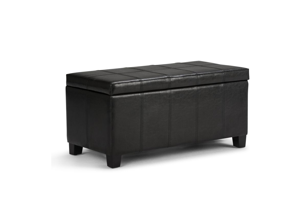 For a stylish solution to your storage needs, the Dover Rectangular Storage Ottoman features a beautiful stitched look with a lift up lid and large interior storage space. The unit is made from durable fabrics and is extra strong and sturdy. Whether you use this ottoman in your entryway, living room, family room, basement or bedroom, it will allow you to hide away all that mess. Assembly required.