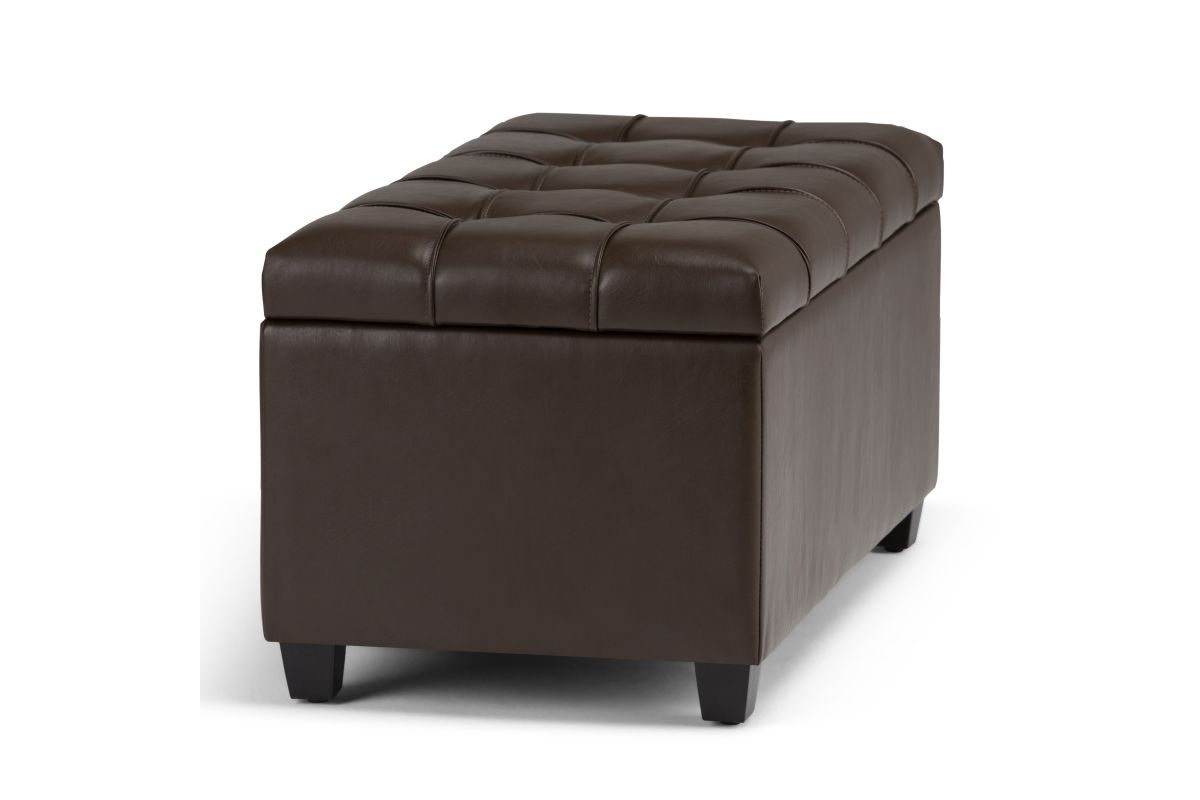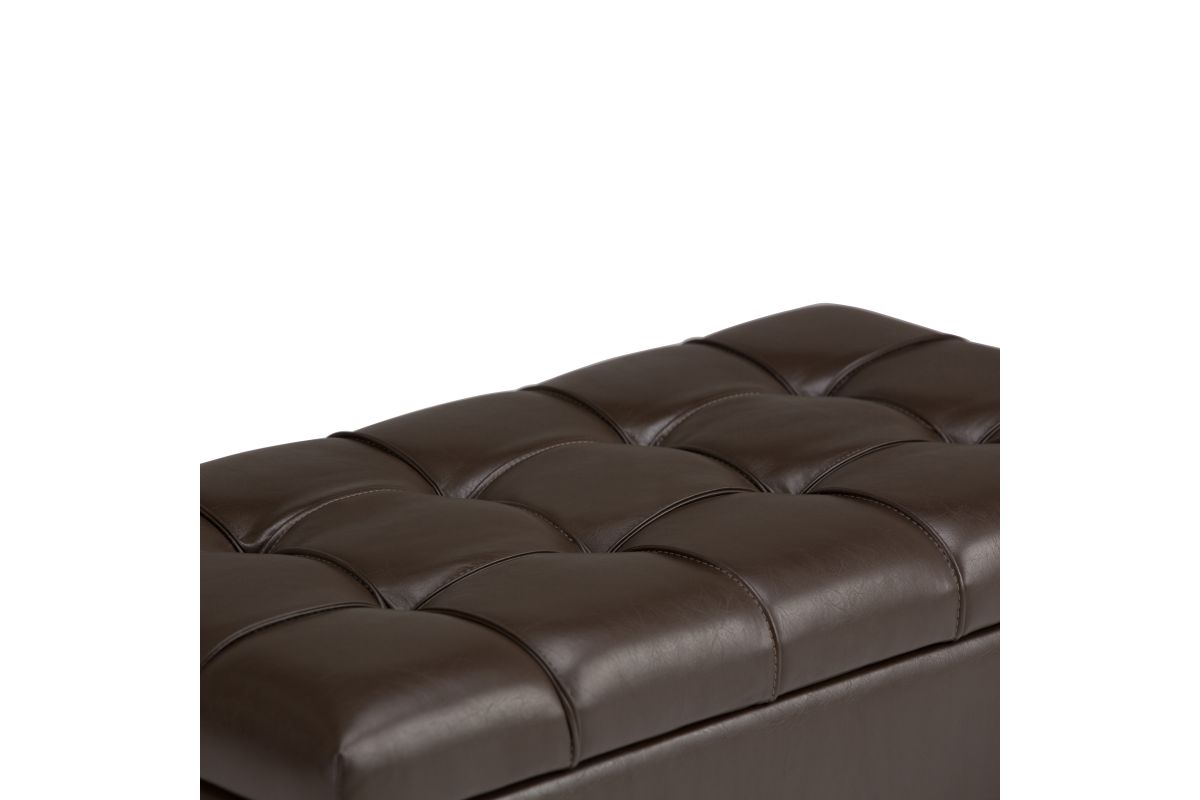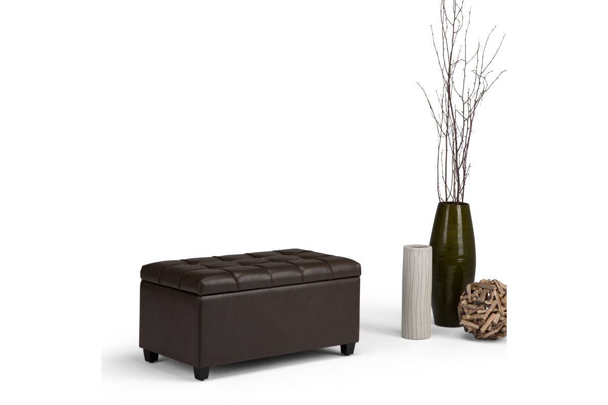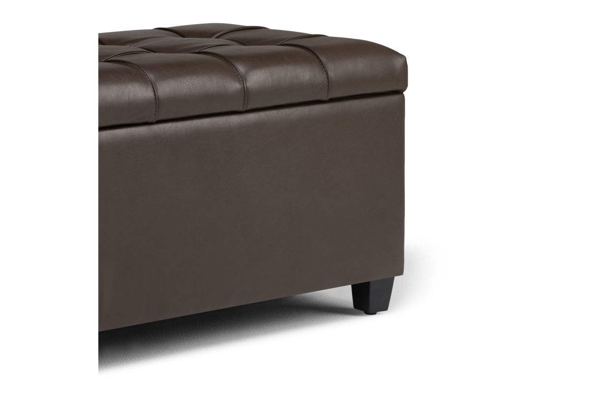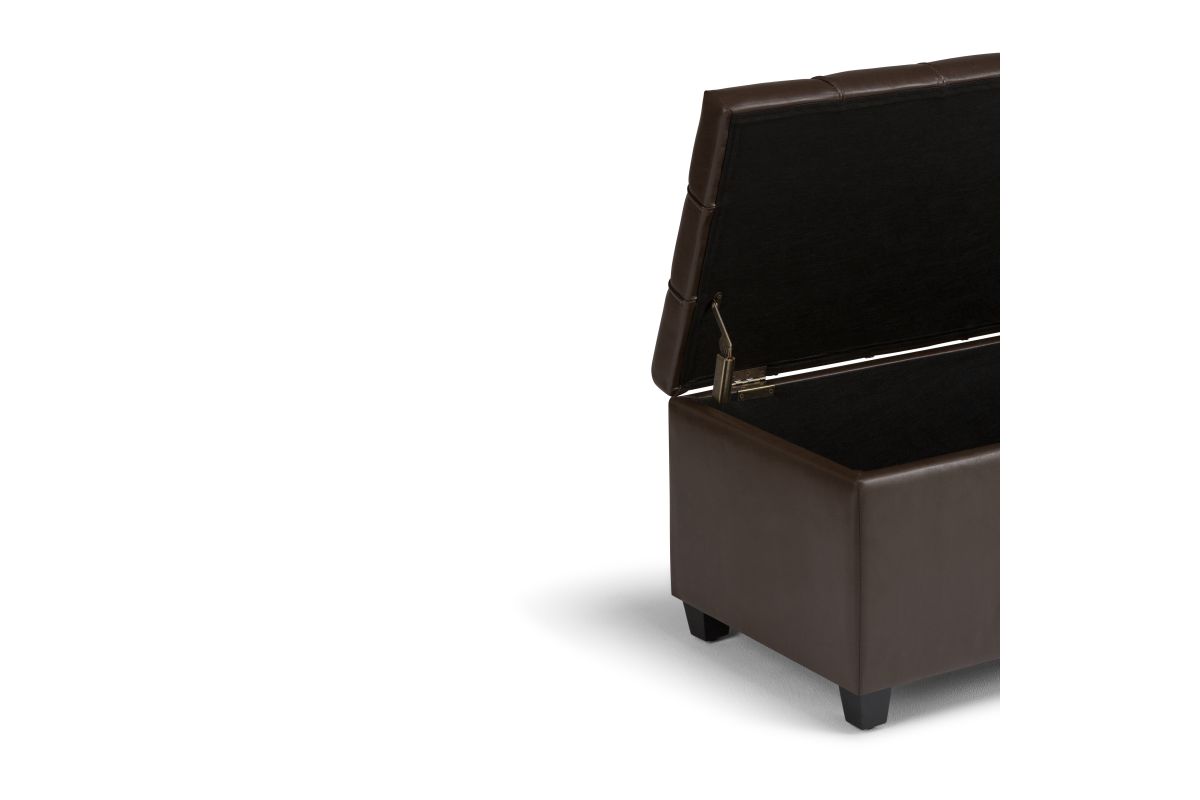 Why sacrifice function for beauty. For a stylish solution to your storage needs, look no further than the Sienna Rectangular Storage Ottoman. This multi-function ottoman features a tufted stitched cushion top and plenty of interior storage space. Whether you use this ottoman in your entryway, living room, family room, basement or bedroom, it will allow you to hide away all that mess. This attractive ottoman comes in a variety of colors and upholstered options, this ottoman is a great choice for any decor. Assembly required.