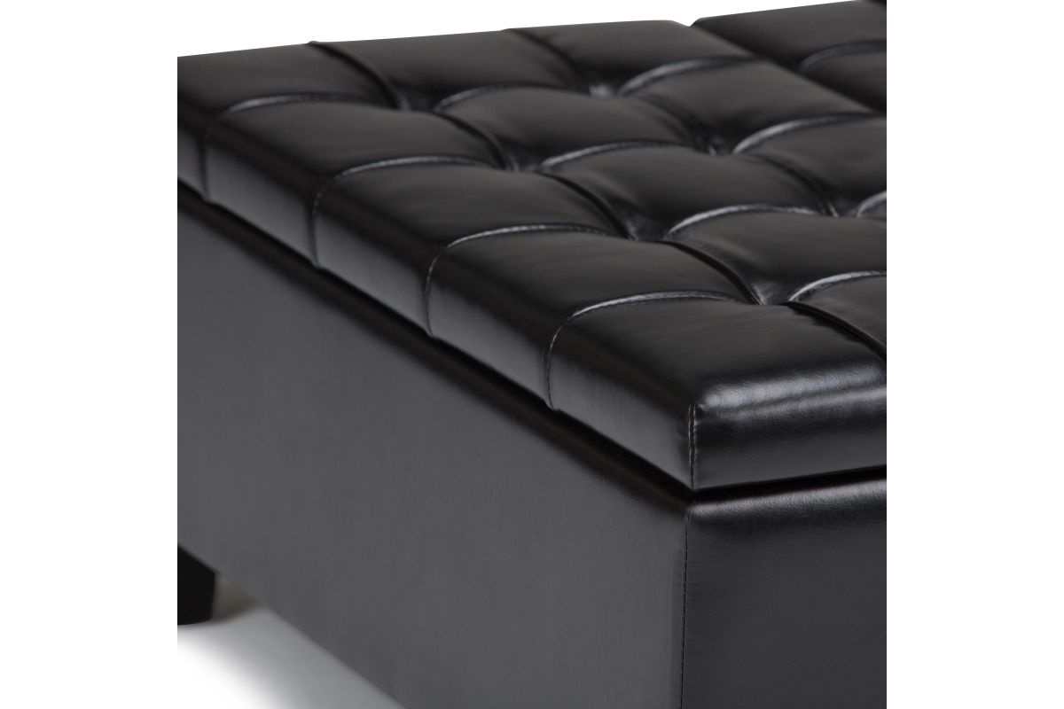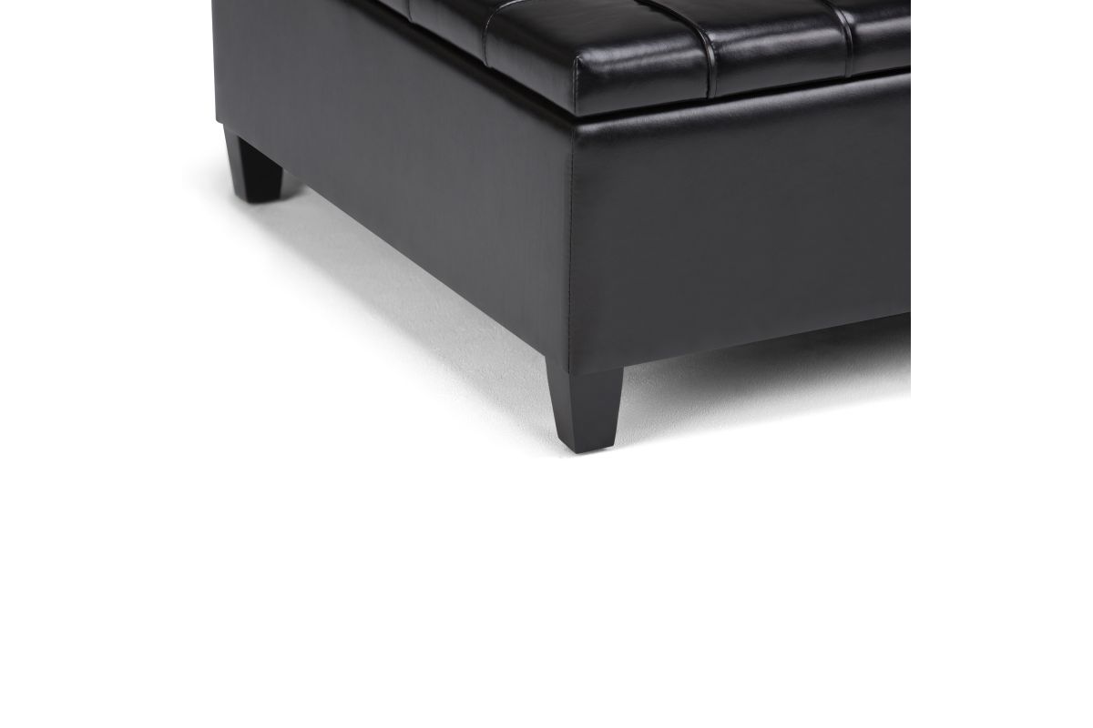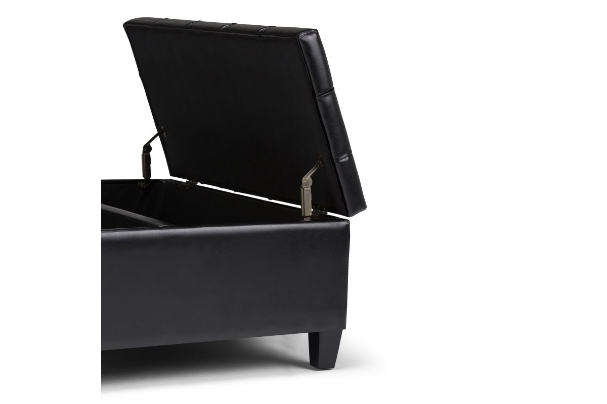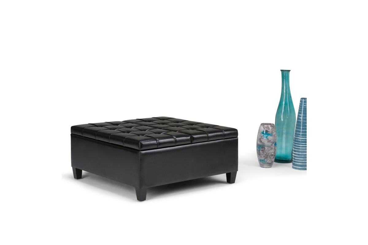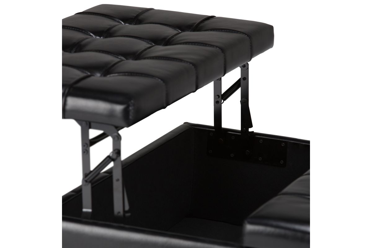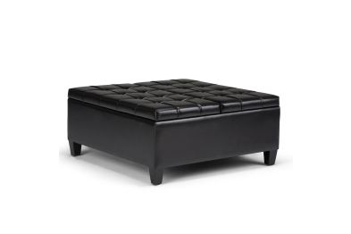 Maximize the space in your living room or family room with the Harrison Coffee Table Storage Ottoman. The contemporary, yet functional design of the ottoman makes it a necessity for any home. The split top features stylish tufted details and one side lifts up - perfect for a lap top, tablet or dining. The large interior space is the perfect solution for your storage needs. The Harrison Coffee Table Storage Ottoman is available in a variety of colors and upholstered options. Assembly required.