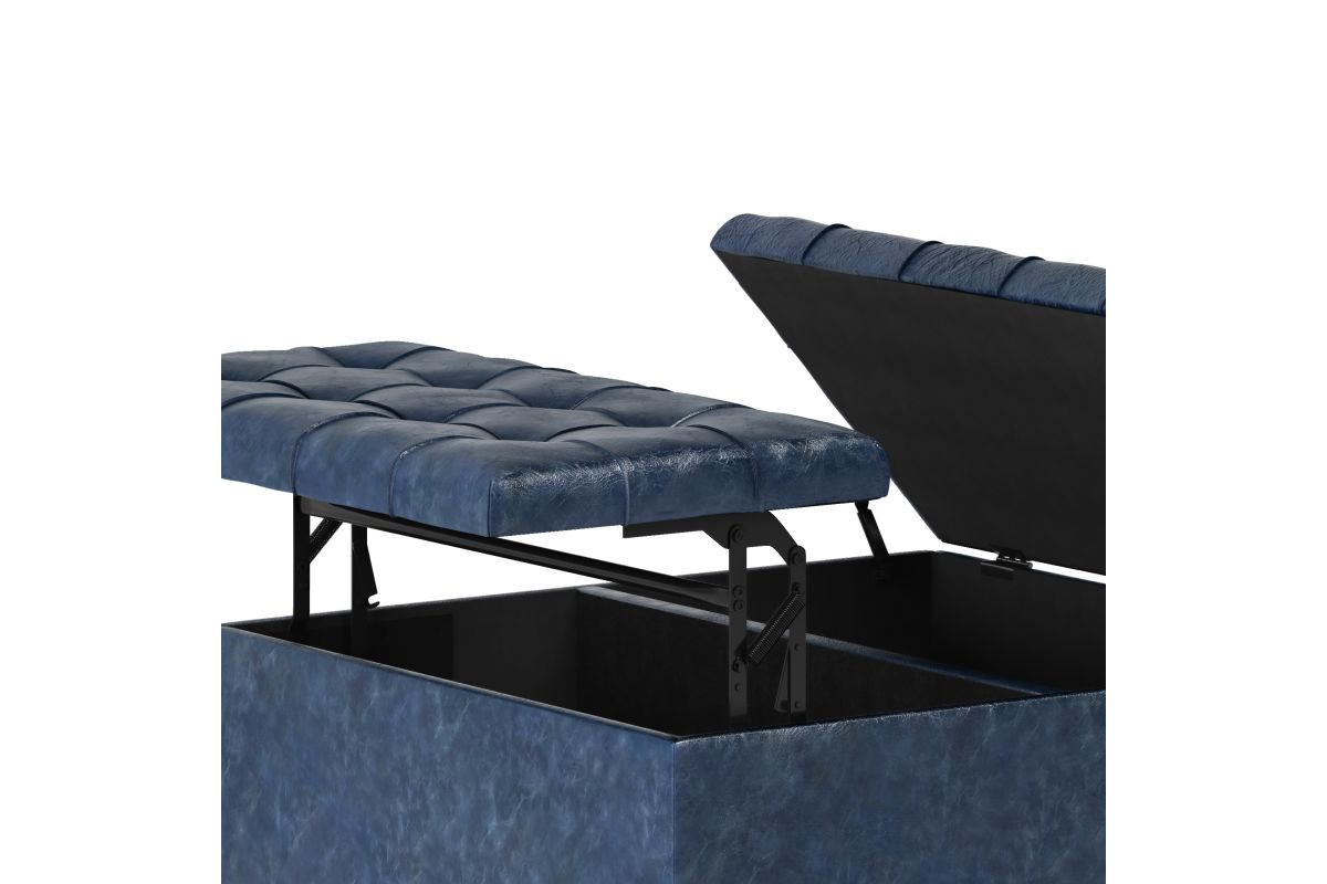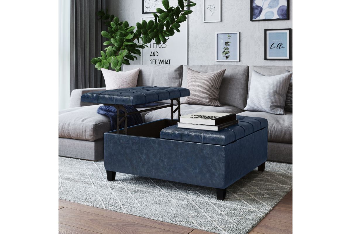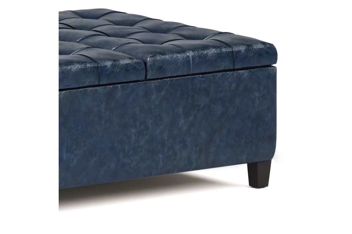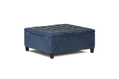 Maximize the space in your living room or family room with the Harrison Coffee Table Storage Ottoman. The contemporary, yet functional design of the ottoman makes it a necessity for any home. The split top features stylish tufted details and one side lifts up - perfect for a lap top, tablet or dining. The large interior space is the perfect solution for your storage needs. The Harrison Coffee Table Storage Ottoman is available in a variety of colors and upholstered options. Assembly required.
