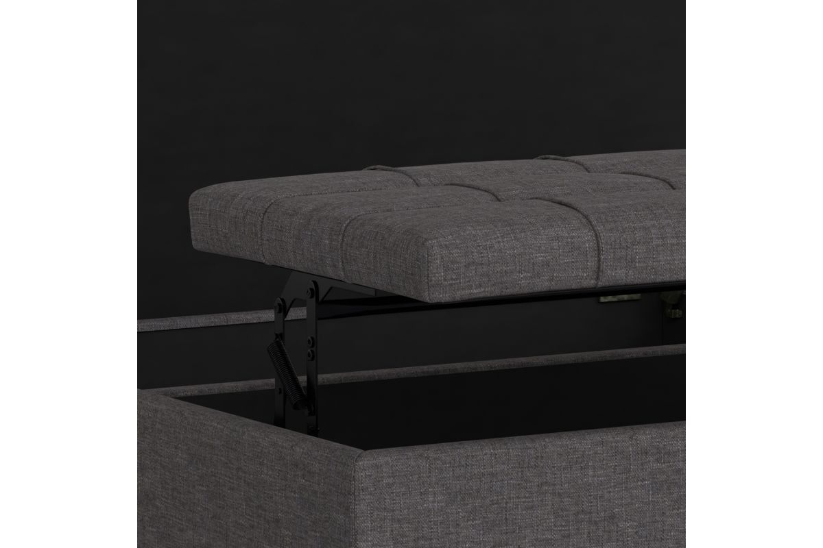 - Upholstered with a durable Slate Grey Linen Look Fabric