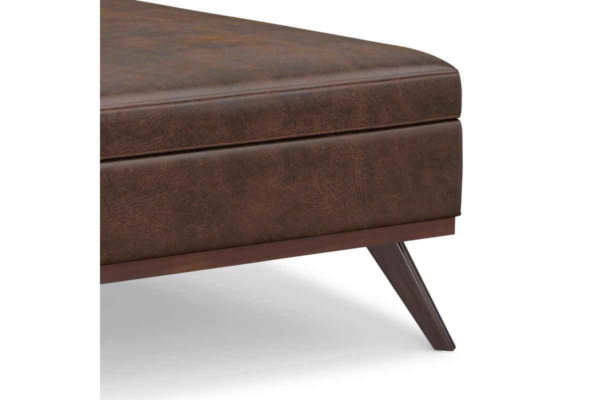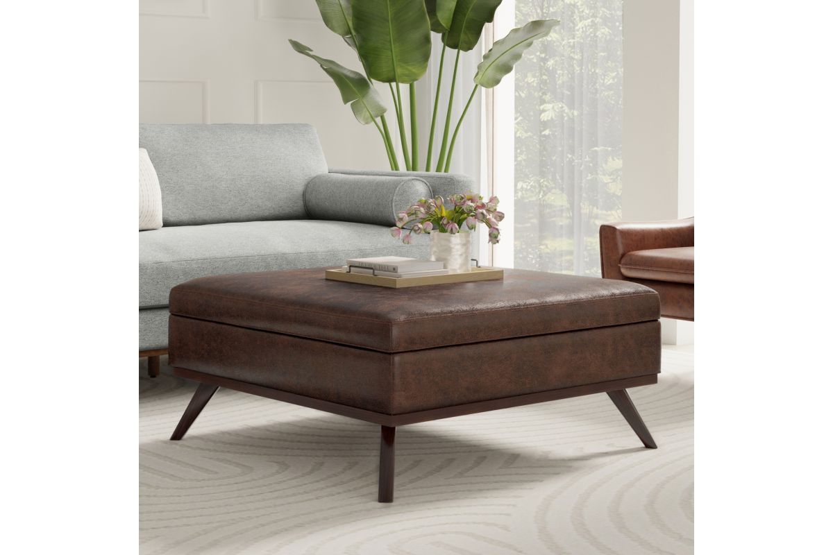 Update your space with the Owen Mid Century Large Square Coffee Table Storage Ottoman. Its modern style will add a fresh on trend look to your home. It features a hydraulic lift up lid and a large interior storage space. Made with solid wood and premium fabric for stylish durability and comfort. Whether used in the living room, family room or den, it will be the showpiece that completes the room. Assembly required.