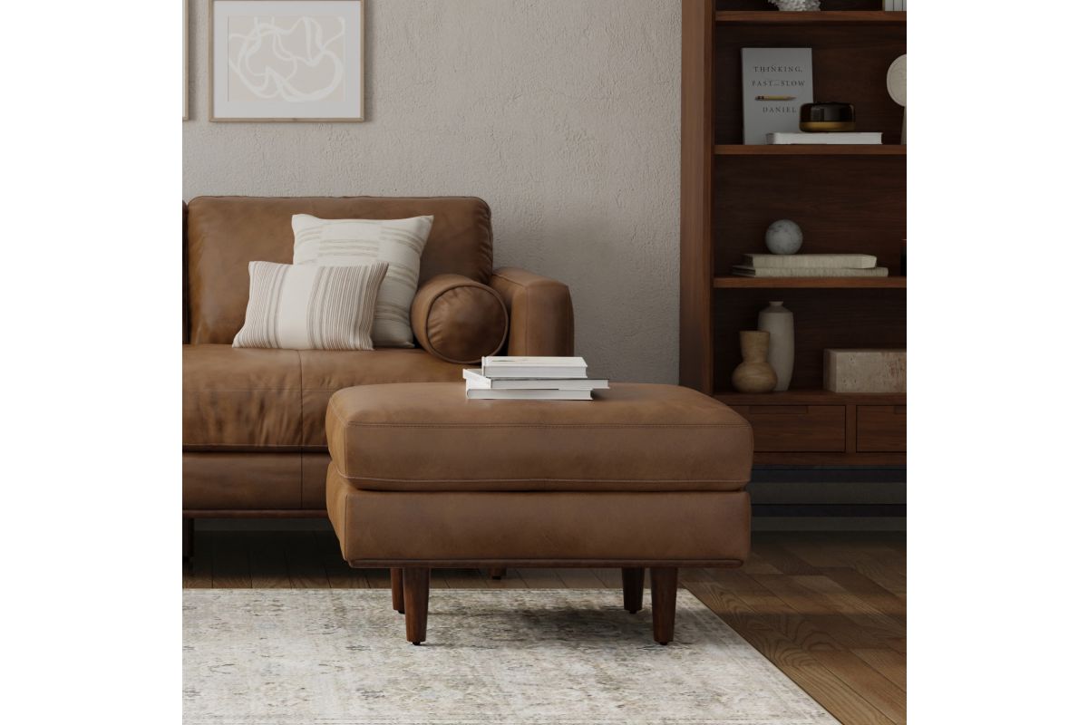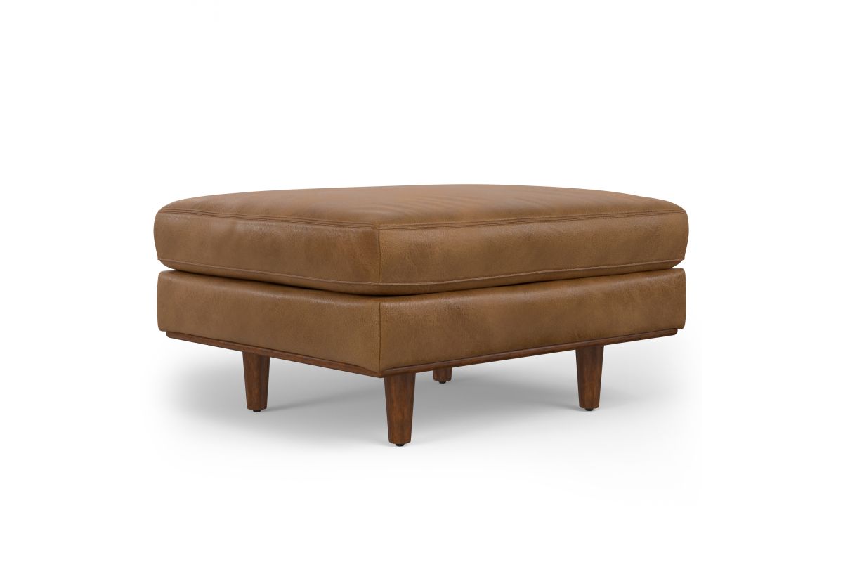 - Dimensions: Handcrafted, multifunctional 33.3"W x 29.1"D x 18.5"H ottoman with mid-century modern styling can be used as a footrest and impromptu coffee table, or place it against one of the matching Morrison sofas to convert the couch into a flexible sectional; accommodates up to 300 lbs.