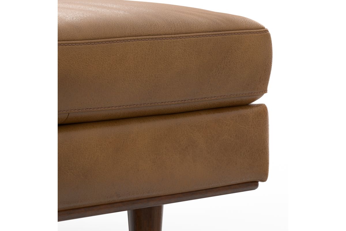 - Sustainable Semi-Aniline Genuine Leather: Made from Kind Leather, semi-aniline leather reducing greenhouse gases by 65% and water use by 52%. Combining softness, durability, and stain resistance, it offers a luxurious finish. Upholstered on an engineered wood frame and solid rubberwood legs with adjustable levelers for stability and style.