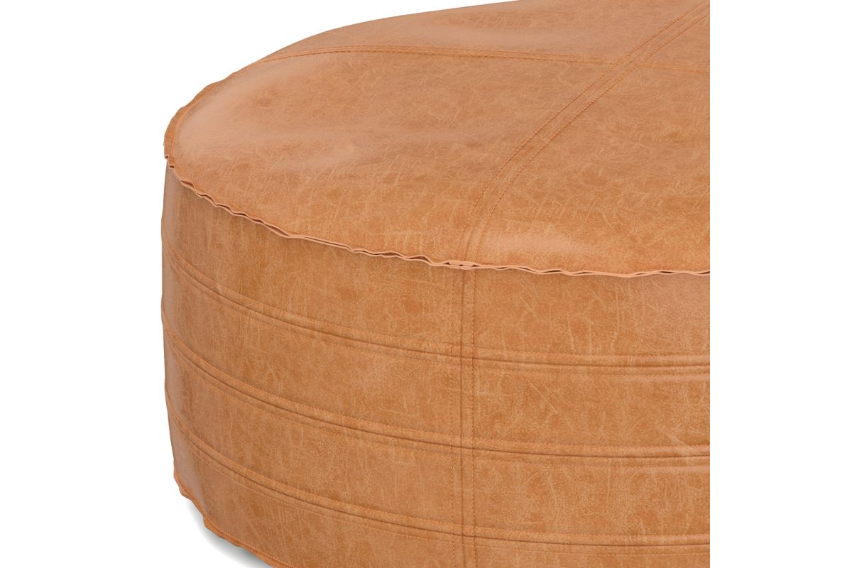 The Brody Round Coffee Table Pouf is a versatile way to add flair and functionality to your space. It features durable vegan faux leather that breathes fresh style into your room. Perfect size for a coffee table, stand-in footrest or spare seating. No assembly required.