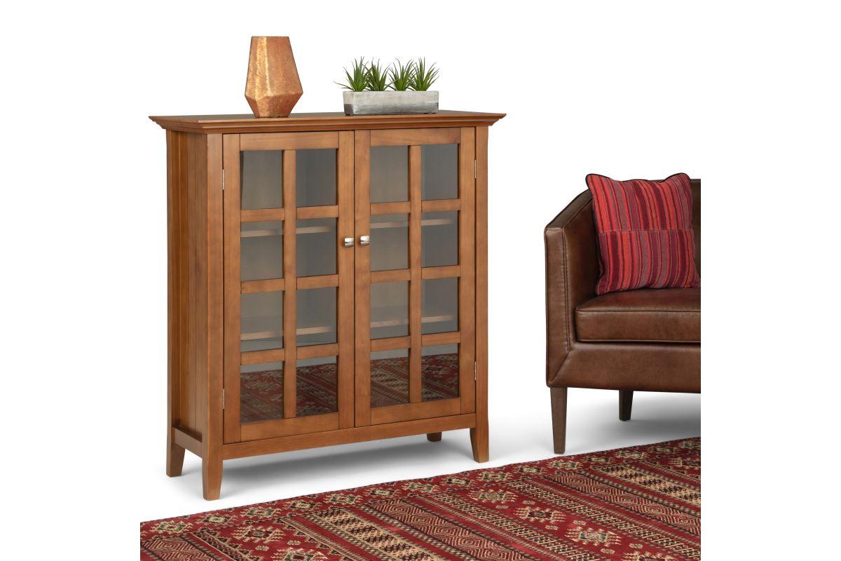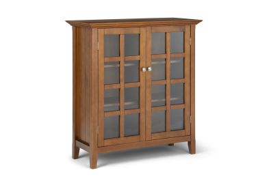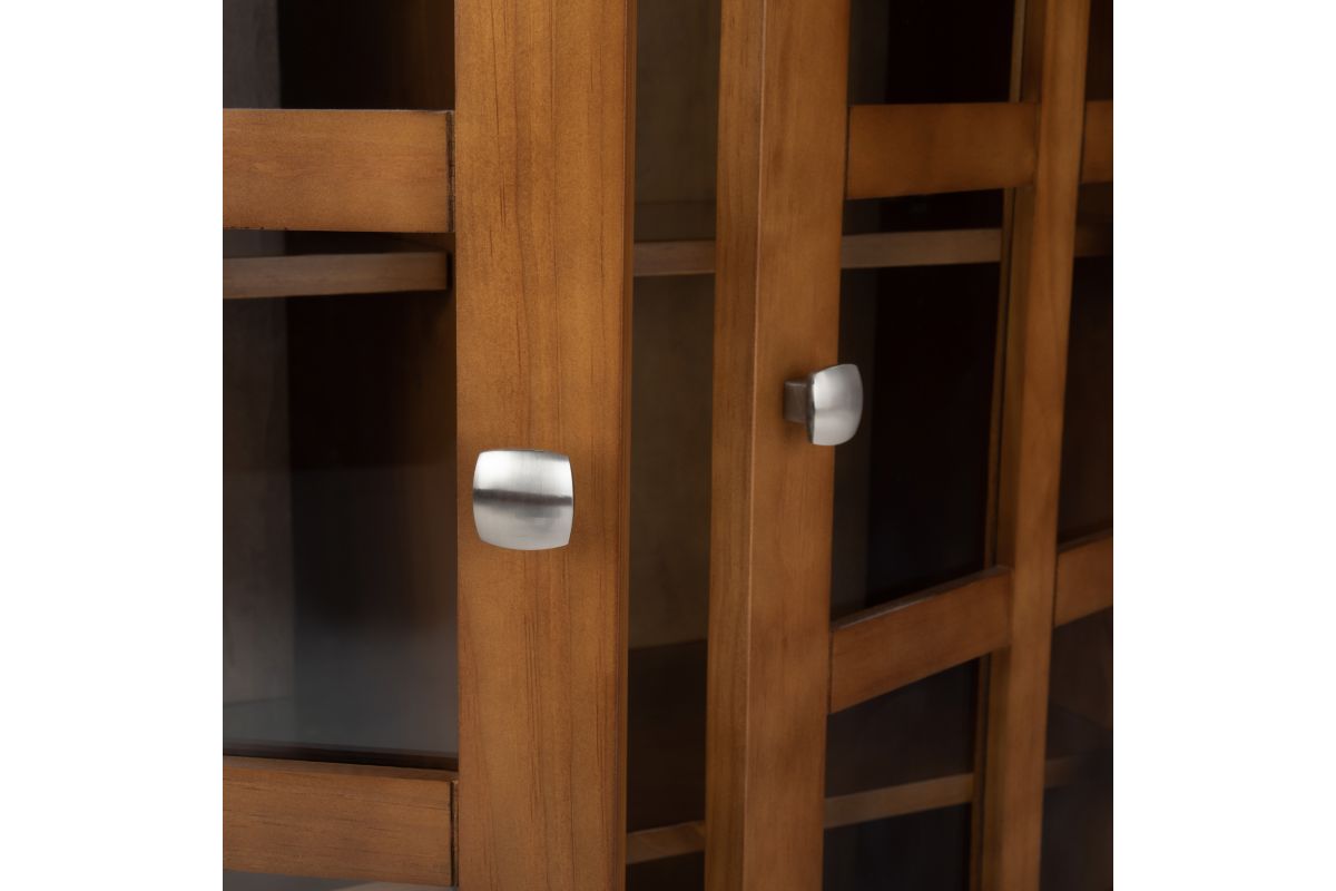 You like to be neat and tidy...that's good, so do we. It is for this reason we designed the Acadian Medium Storage Cabinet. Two tempered glass doors open to four adjustable shelves allowing you to reconfigure the layout to suit your needs. Display your fine china, decorative accents or even movies on dedicated display space for a clean, distinctive look. Assembly required.