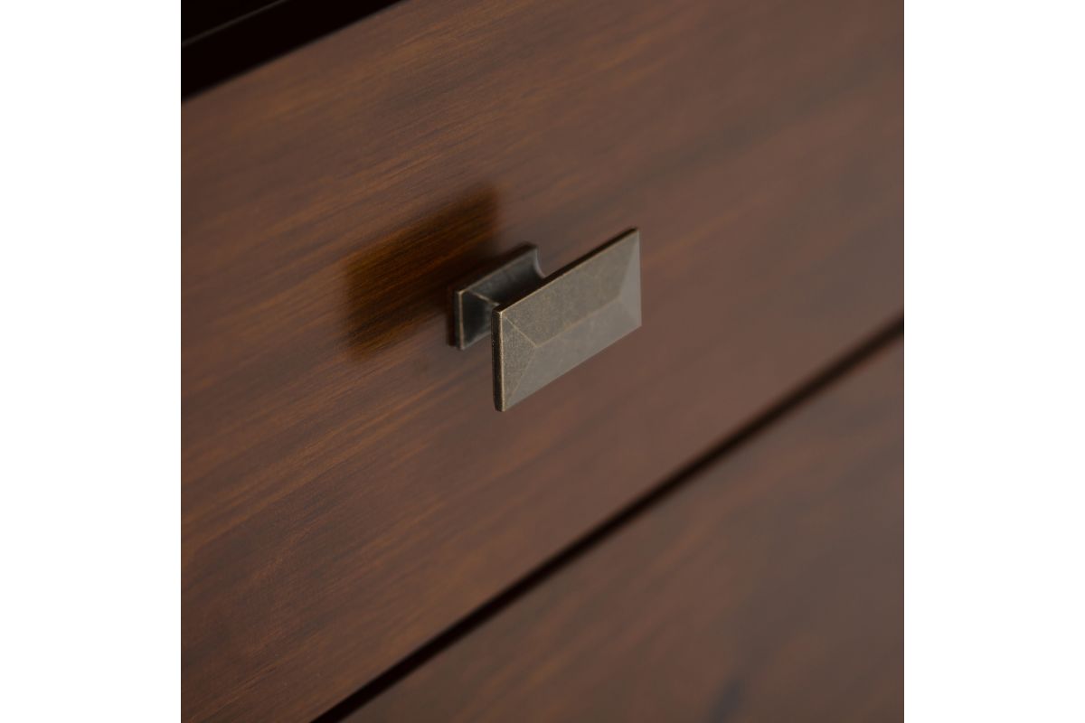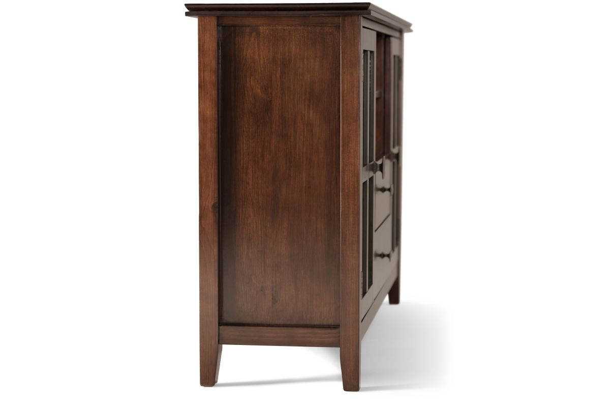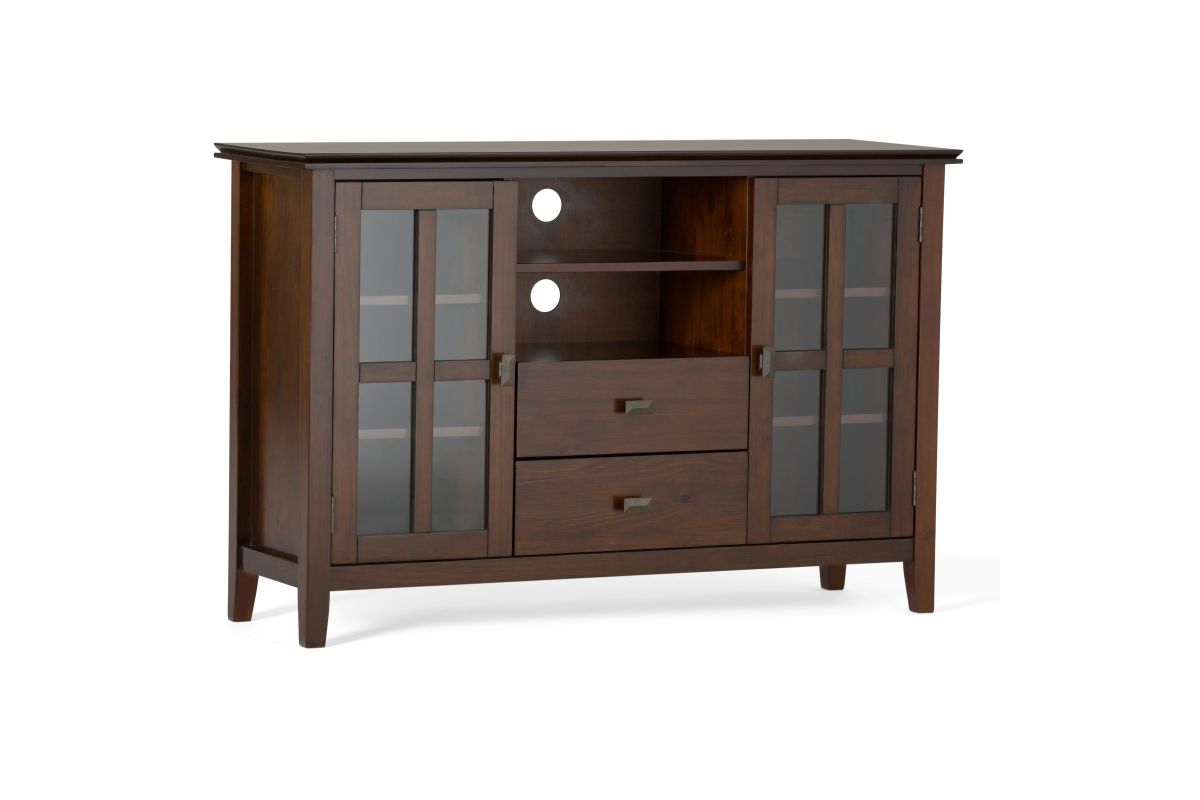 You just bought the ultimate large flat screen TV. Now what to do? Hang it on the wall? No, you need the perfect TV Stand for storage and to enhance your viewing pleasure. Look no further than our most popular Artisan TV Stand. It is perfectly sized for TVs up to 60 inches. The 35 inch height puts the TV at a level that is ideal for comfortable viewing. The Artisan TV Stand has plenty of storage and space for all your media and gaming devices. It has a large centrally located open area with one adjustable shelf and two drawers. The two large side storage cabinets open to two adjustable shelves. The unit features cord management cut-outs for easy installation of TV and media components. Assembly required.