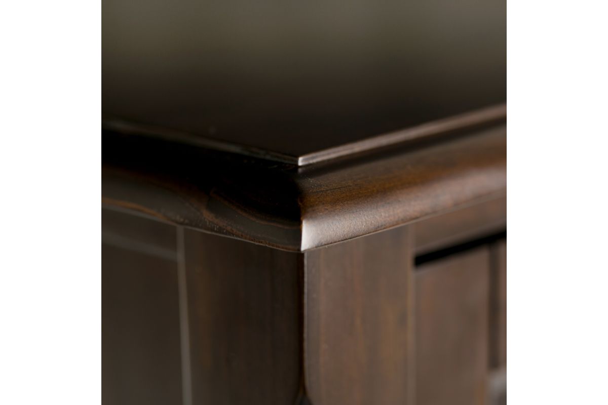 - Hand-finished with a Dark Mahogany Brown stain and a protective NC lacquer to accentuate and highlight the grain and the uniqueness of each piece of furniture