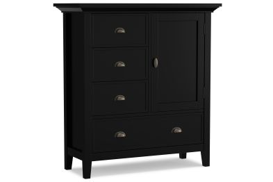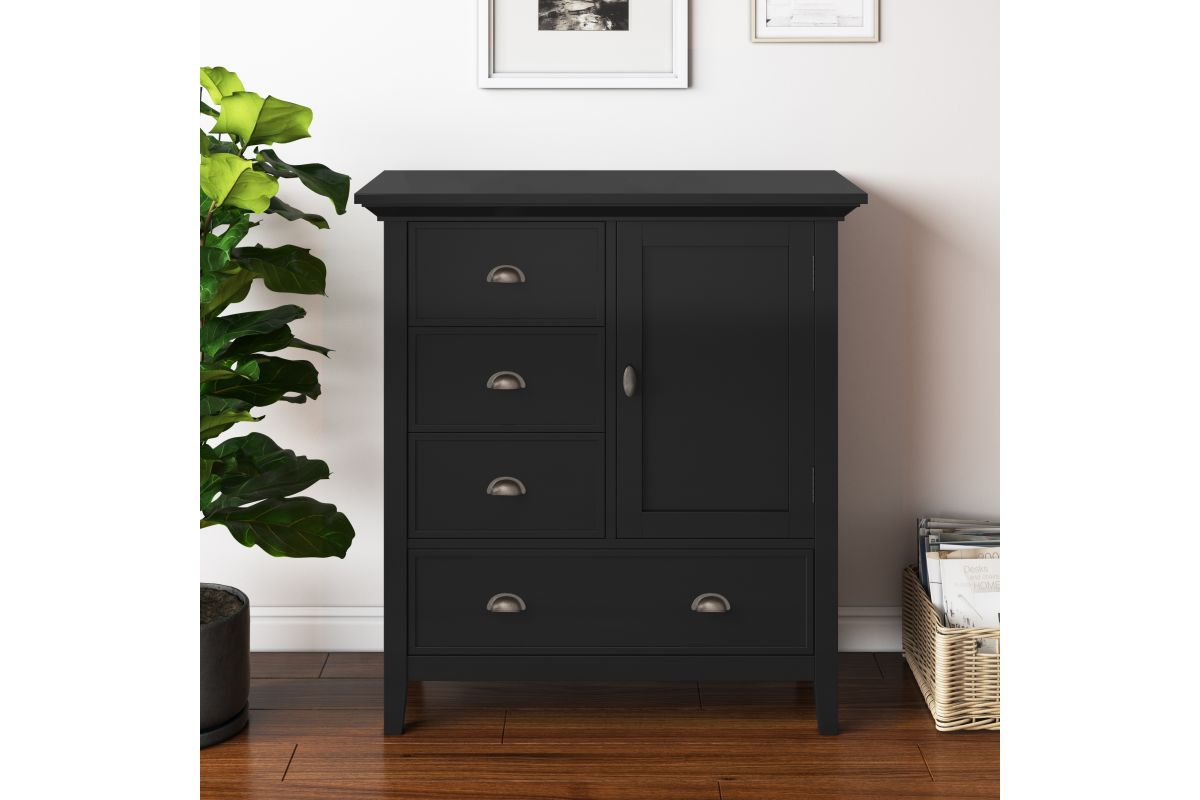 You like to be neat and tidy...that's good, so do we. It is for this reason we designed the Redmond Medium Storage Cabinet. Four drawers and one cabinet conveniently hold your personal items offering an abundance of versatility to effortlessly organize by design and store away anything you wish to remain hidden...your secret is safe with us. This flexible and functional piece can be used in just about any room in your home. Assembly required.