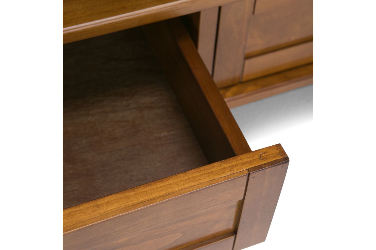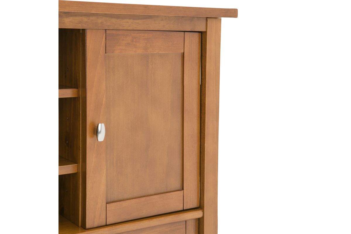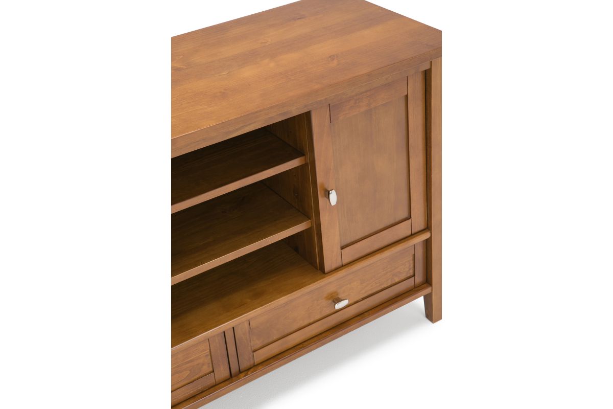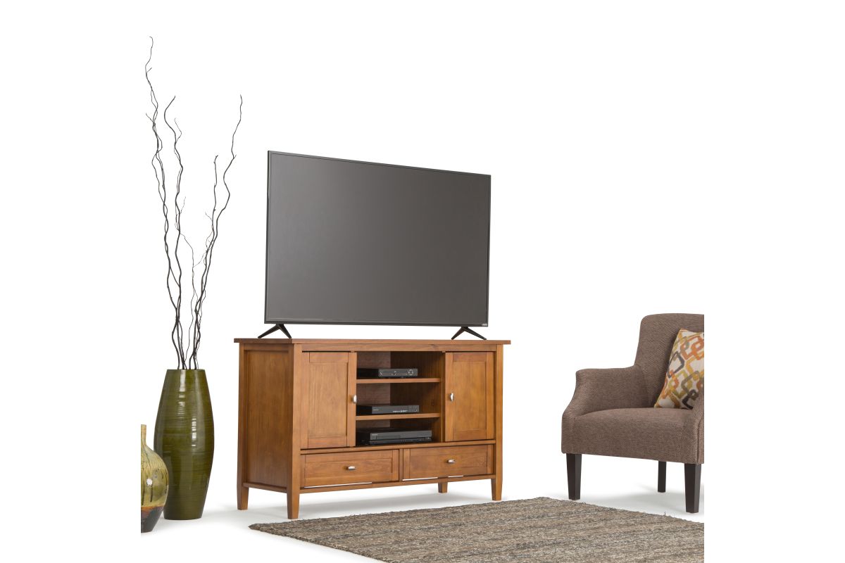 Having just purchased your dream large flat screen TV - you need the perfect TV Stand to enhance your viewing pleasure. Look no further. The Warm Shaker TV Stand is perfectly sized for TVs upto 50 inches. The 29 inch height puts the TV at a level that is ideal for comfortable viewing. The Warm Shaker TV Stand has plenty of storage and space for all your media and gaming devices. It has a large centrally located open area with two adjustable shelves and two bottom drawers. The two side storage cabinets open to one adjustable shelf. The unit features cord management cut-outs for easy installation of TV and media components. Assembly required.