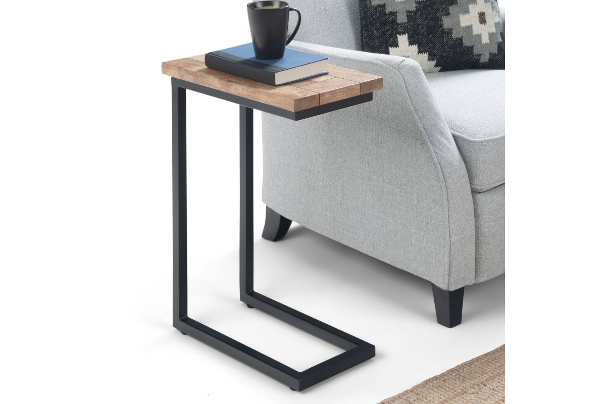 Designed for both style and functionality, the Skyler C Side Table seamlessly blends industrial character with modern convenience. Featuring a handcrafted solid mango wood tabletop in a Natural finish, this space-saving C-shaped table slides easily under sofas or chairs, making it perfect for holding drinks, snacks, or a laptop. The charcoal powder-coated metal frame provides a sturdy base, while the wood's natural grain adds warmth and texture. Ideal for living rooms, bedrooms, or home offices, this compact yet versatile piece reflects timeless craftsmanship with a contemporary edge. No assembly required.