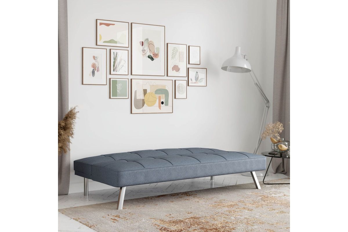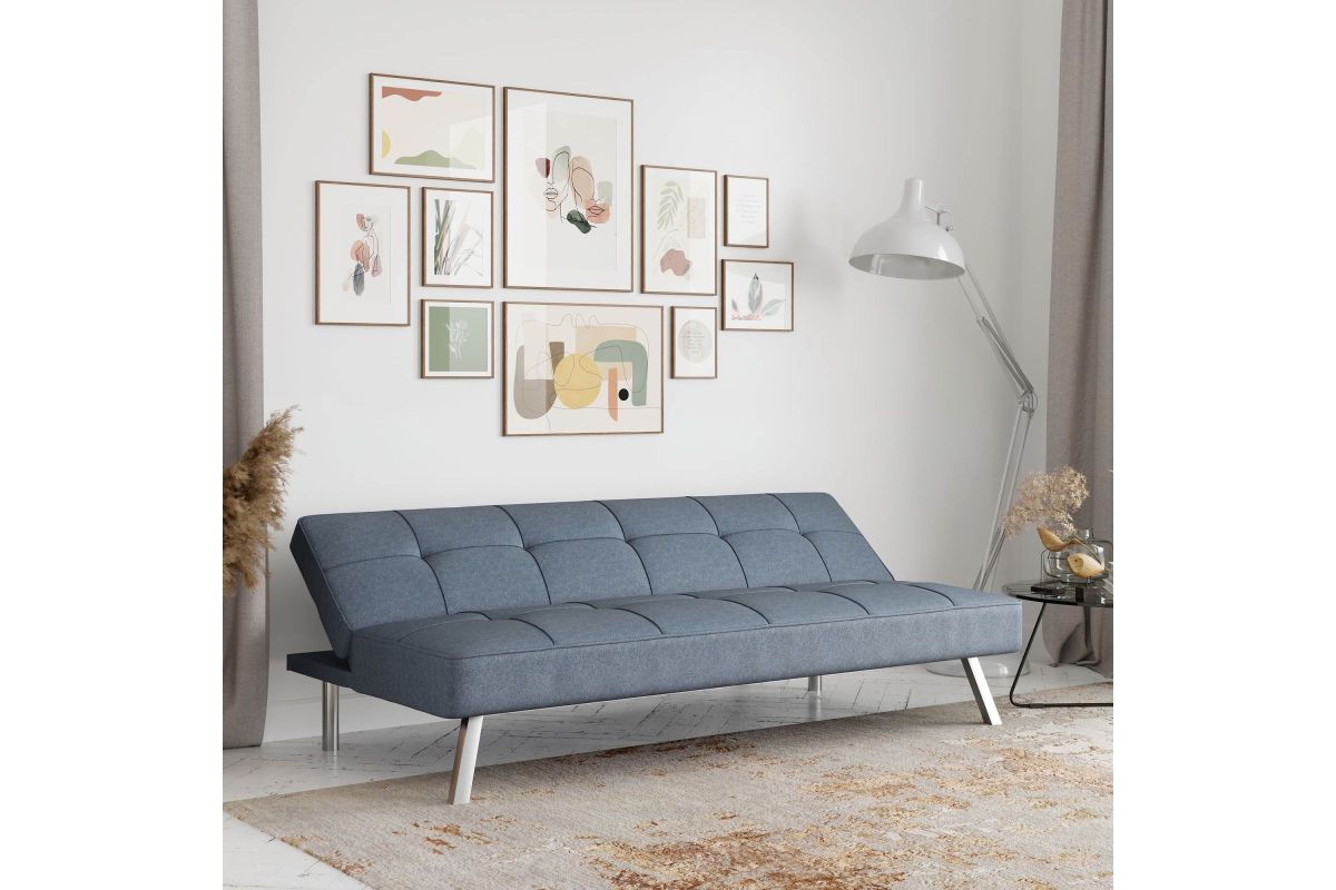 Introducing the epitome of style and comfort - our Chelsea Convertible Sofa with Chrome Legs! Elevate your living space with this stunning piece that seamlessly combines contemporary design with luxurious comfort. Relax in the plush tufted upholstery that adds a touch of sophistication to any room. Our convertible sofa's chrome legs provide a modern twist, effortlessly blending with any decor theme. Designed for versatility, this futon effortlessly transforms from a stylish sofa to a cozy bed, making it perfect for accommodating overnight guests or creating a cozy spot for relaxation. Experience unrivaled comfort with its generously padded cushions and sturdy construction, ensuring long-lasting durability and support. Whether you're entertaining guests or seeking a comfortable retreat, our Chelsea Convertible Sofa is the perfect addition to your home. Order now and indulge in the perfect fusion of style and comfort!