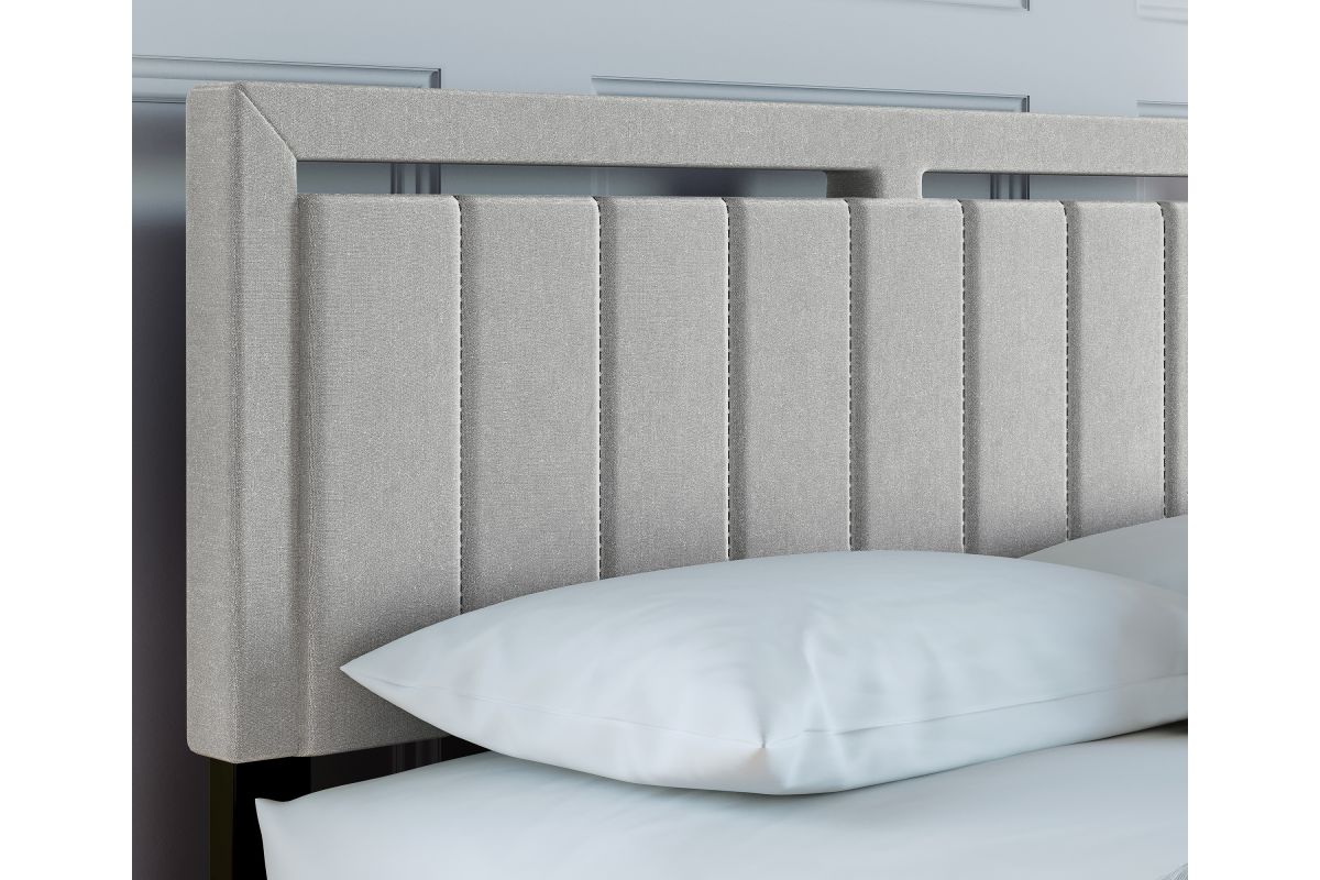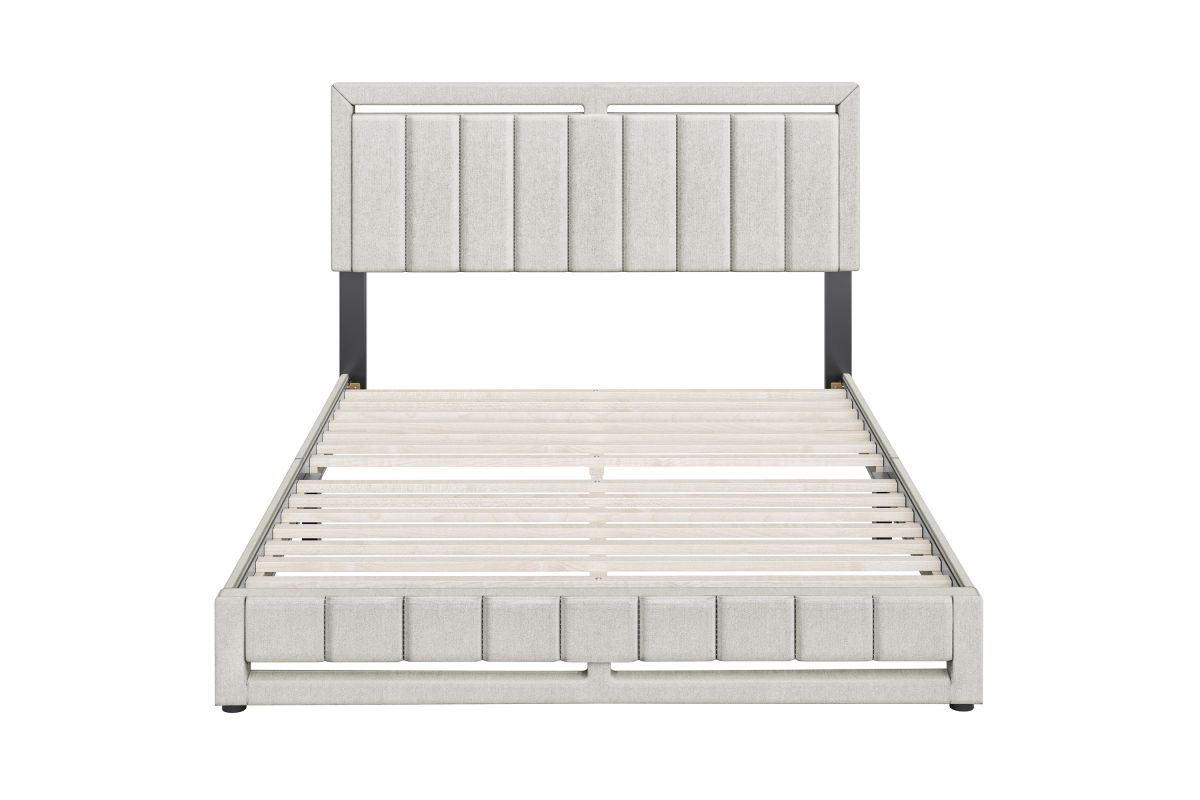 This stately upholstered platform bed frame features vertical channel tufting on the headboard with matching footboard that extends to the floor for a unique, polished focal piece for any bedroom. Frame is wrapped and slightly padded for a premium look and feel. Bed comes with a full 14-slat system that will support up to 700 lbs. No box spring or foundation required. Ships in 1 box for easy transport. Assembles in under 15 minutes, and all hardware is conveniently zipped up behind the headboard. 1 Year Limited Warranty.