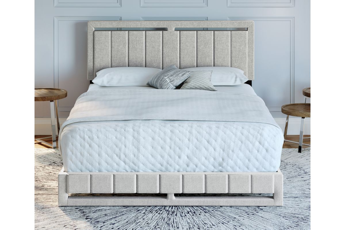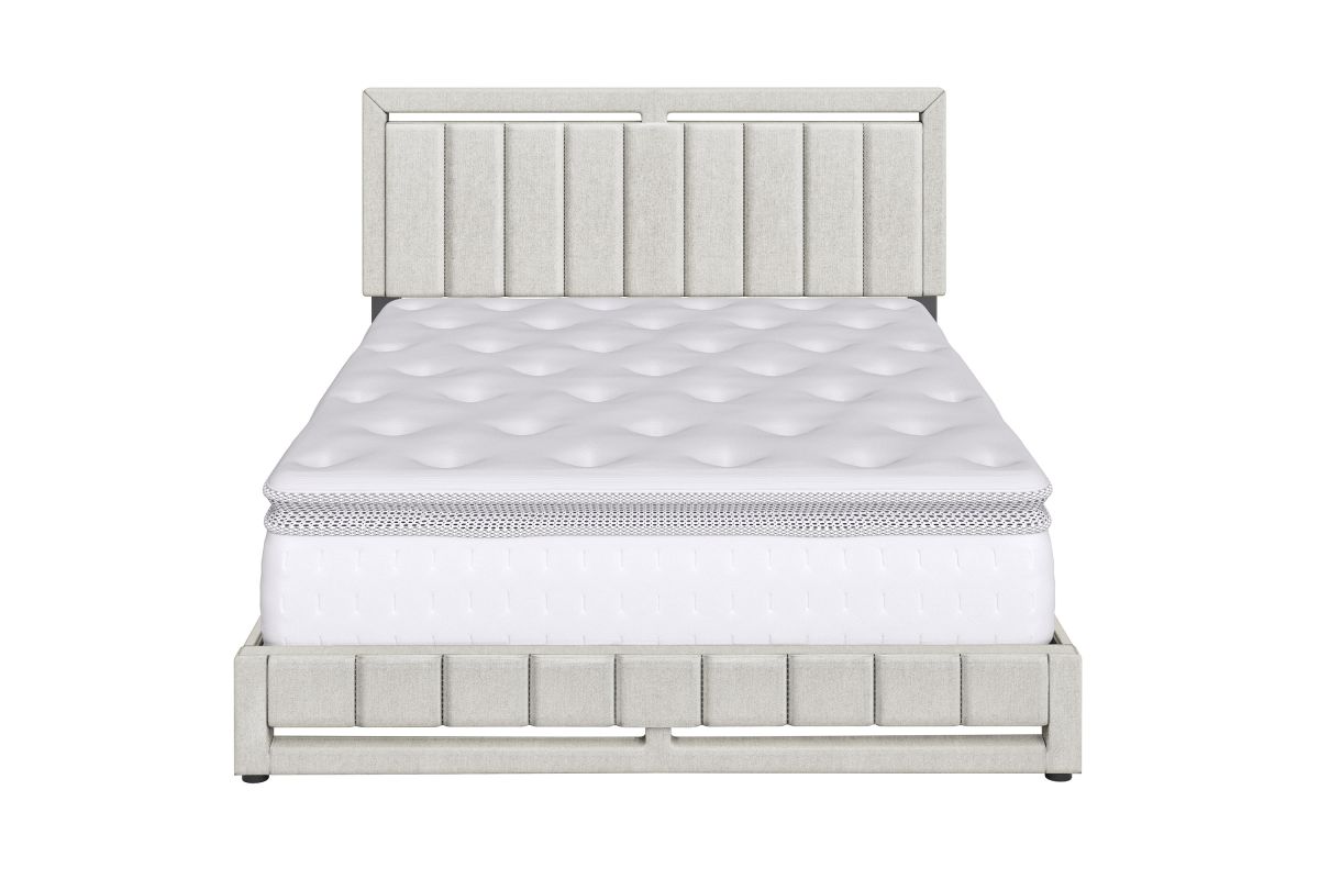 This stately upholstered platform bed frame features vertical channel tufting on the headboard with matching footboard that extends to the floor for a unique, polished focal piece for any bedroom. Frame is wrapped and slightly padded for a premium look and feel. Bed comes with a full 14-slat system that will support up to 700 lbs. No box spring or foundation required. Ships in 1 box for easy transport. Assembles in under 15 minutes, and all hardware is conveniently zipped up behind the headboard. 1 Year Limited Warranty.