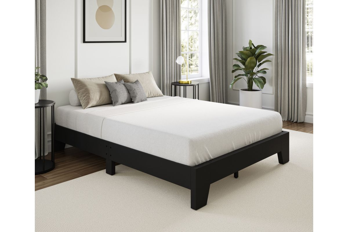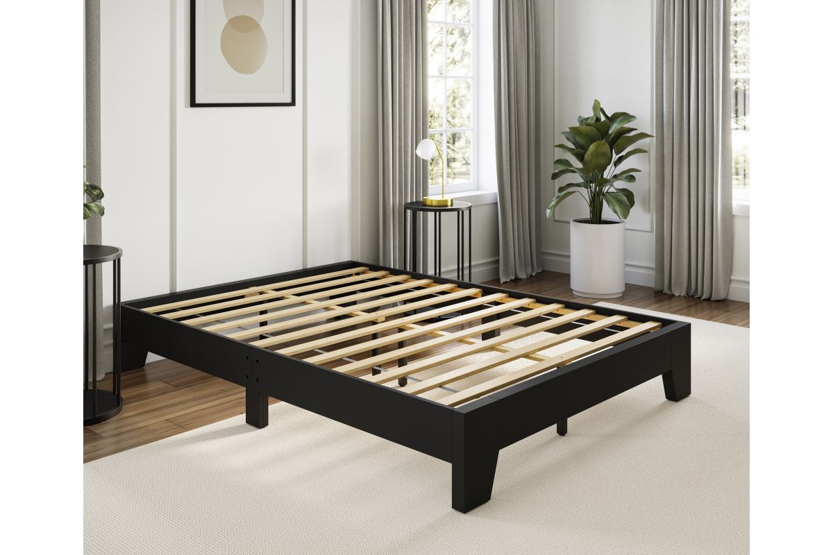 Elevate your bedroom with the Boyd Sleep Moreno Wood Platform Bed Frame with Wood Slat Support. This exceptional bed frame offers a perfect blend of style, durability, and functionality, making it an excellent addition to your home. Say goodbye to the need for a box spring, thanks to the sturdy birch slat system that provides direct mattress support. The Moreno's classic and effortless style seamlessly complements various bedroom aesthetics, infusing a touch of sophistication into your decor. Constructed from durable composite wood with a smooth laminate finish, this platform bed is built to withstand the test of time. With four center support legs, it ensures stable and firm support for your mattress, preventing uncomfortable sagging. The 12-inch height of the Moreno bed frame creates ample under-bed storage space, helping you keep your room organized and clutter-free. Assembly is a breeze, taking just 30 minutes with the help of a Philips screwdriver (not included). For a complete bedroom transformation, pair it with Boyd Sleep's matching Anzio nightstand, combining style and functionality seamlessly. Upgrade your bedroom today with the Boyd Sleep Moreno Wood Platform Bed Frame, where classic style meets modern convenience.