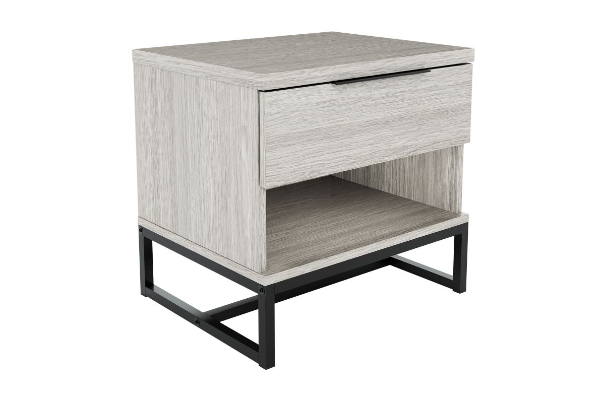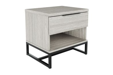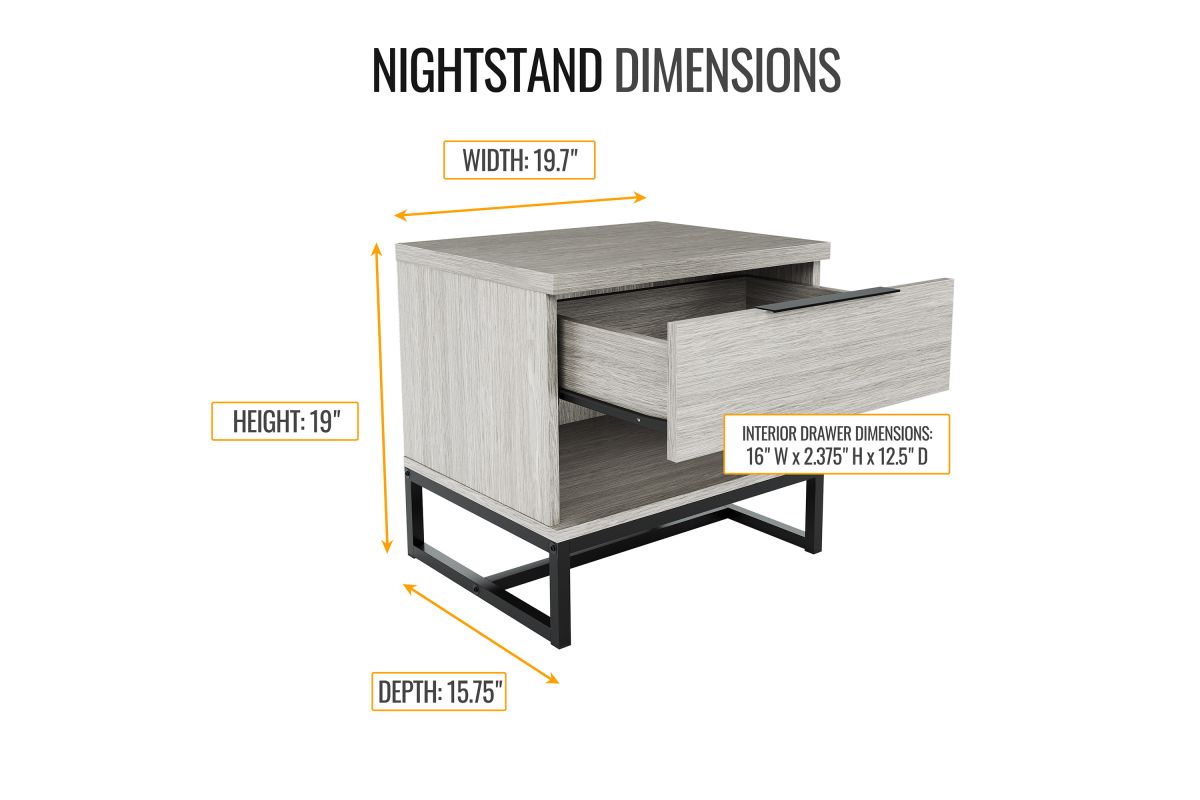 Keep the essentials in arm's reach with the Boyd Sleep Mondavi Single Drawer Modern Nightstand. This bedside table offers two types of storage with a sleek, modern design. A single drawer keeps small items tucked away, while a lower open cubby fits your current read. Euro glides allow the drawer to open and close smoothly with minimal sticking. This end table is constructed from durable, heavy-duty composite wood with a laminate wood grain finish. The Mondavi is available in Black, White, and Farmhouse Gray to coordinate with your existing bedroom furniture. Easily fits in modern, contemporary, mid-century, farmhouse, and rustic industrial style environments. With its versatility and good looks, you will enjoy Boyd Sleep's Mondavi Single Drawer Modern Nightstand for many years to come. Ships in 1 box, assembles in under 30 minutes. Assembly is required.