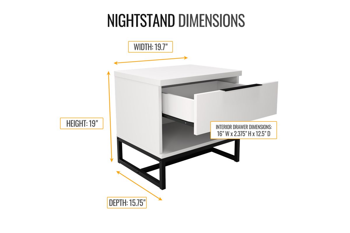Keep the essentials in arm's reach with the Boyd Sleep Mondavi Single Drawer Modern Nightstand. This bedside table offers two types of storage with a sleek, modern design. A single drawer keeps small items tucked away, while a lower open cubby fits your current read. Euro glides allow the drawer to open and close smoothly with minimal sticking. This end table is constructed from durable, heavy-duty composite wood with a laminate wood grain finish. The Mondavi is available in Black, White, and Farmhouse Gray to coordinate with your existing bedroom furniture. Easily fits in modern, contemporary, mid-century, farmhouse, and rustic industrial style environments. With its versatility and good looks, you will enjoy Boyd Sleep's Mondavi Single Drawer Modern Nightstand for many years to come. Ships in 1 box, assembles in under 30 minutes. Assembly is required.