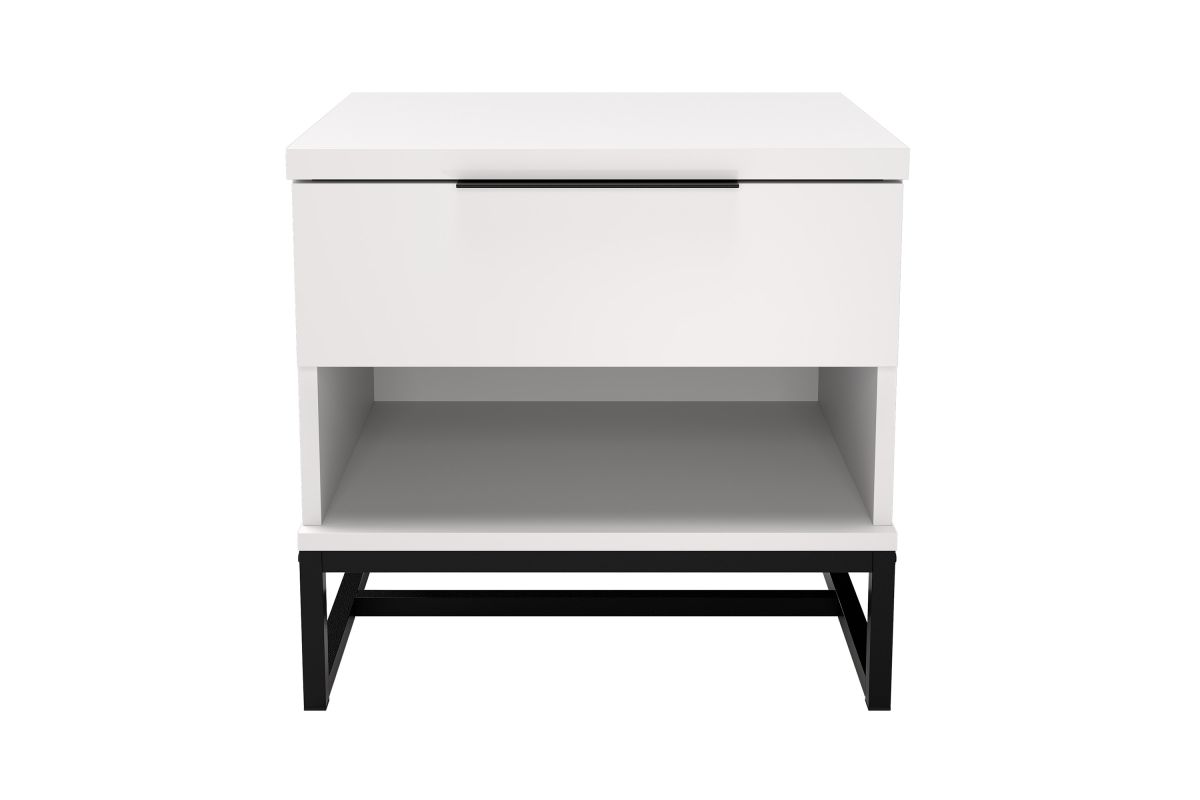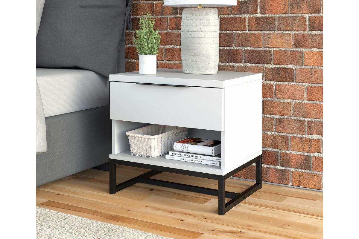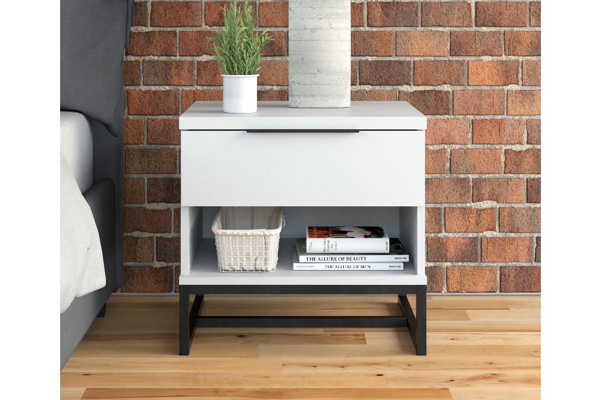 - One drawer nightstand with open storage cubby