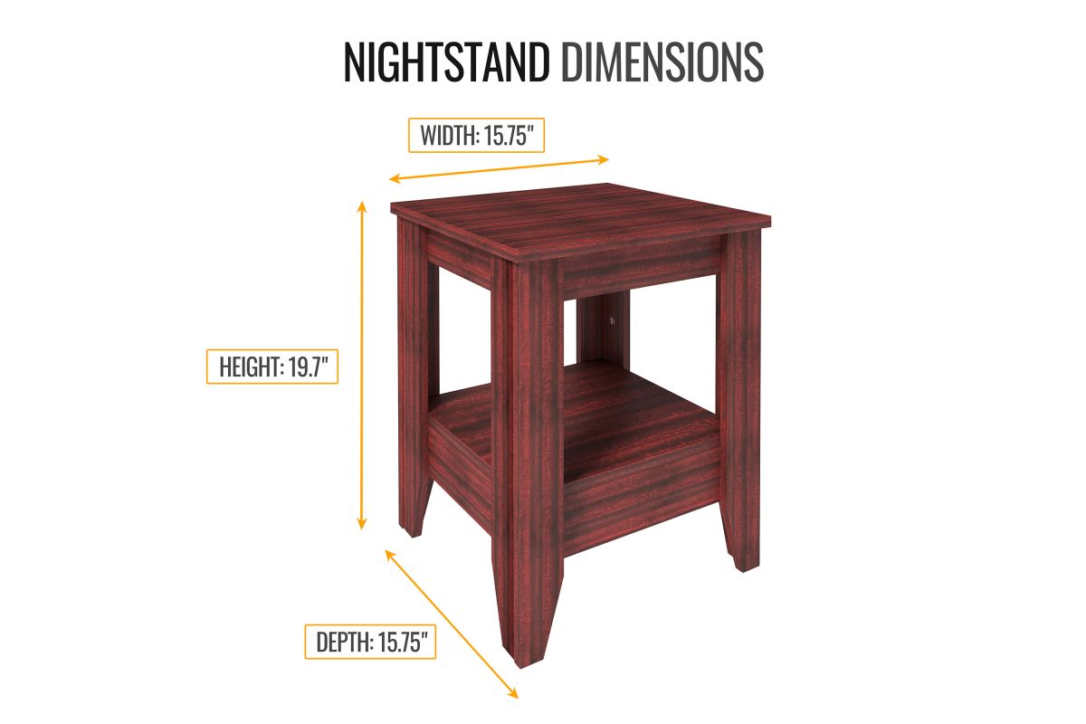 The Arona Classic Open Storage Nightstand offers a quick solution for bedside storage in a simple design. This bedside table features a spacious top surface and a single lower shelf to store your nighttime necessities. Use a cloth storage bin in the lower cubby for extra hidden storage. This wood finish nightstand offers a classic accent to your bedroom or guest room. The Arona bed table is made from durable hardwood MDF with a laminate wood grain finish. Available in Black, White, Cherry, and Farmhouse Gray. Ships flat in 1 box via UPS/FedEx for easy transport, especially in small spaces. Assembles in 30 minutes. Assembly is required.