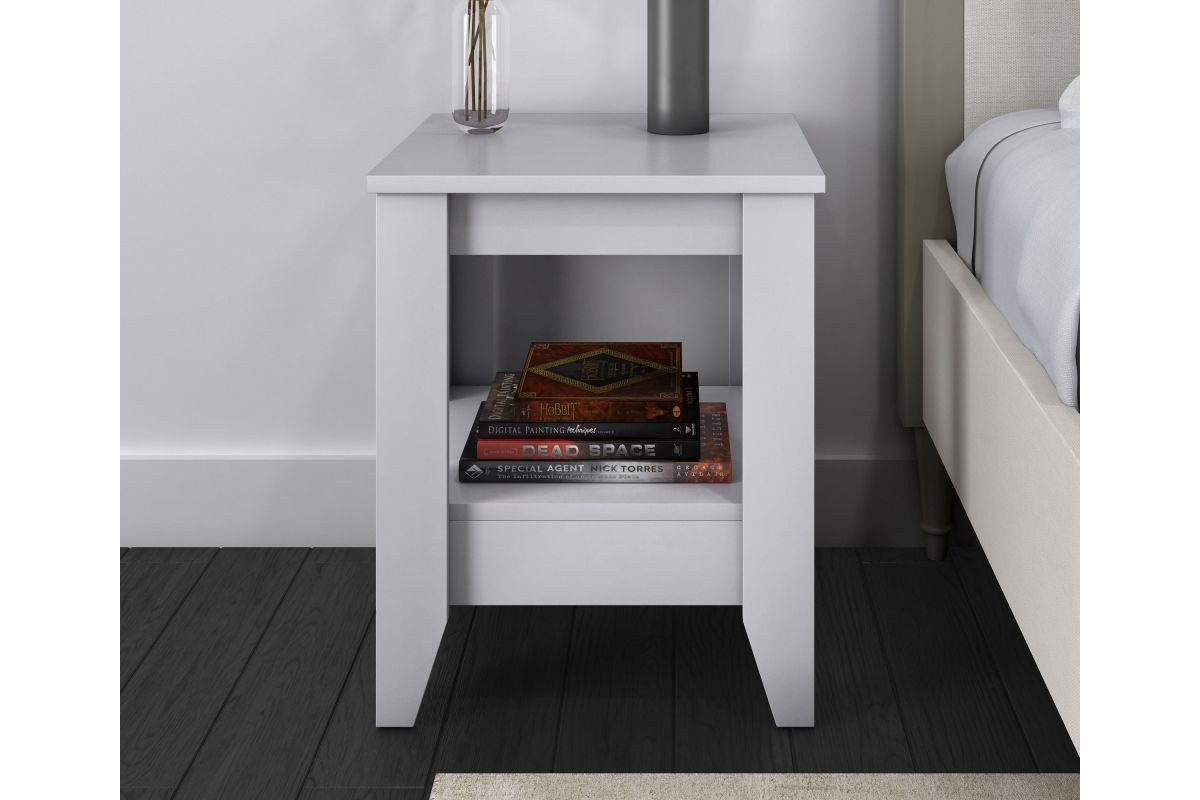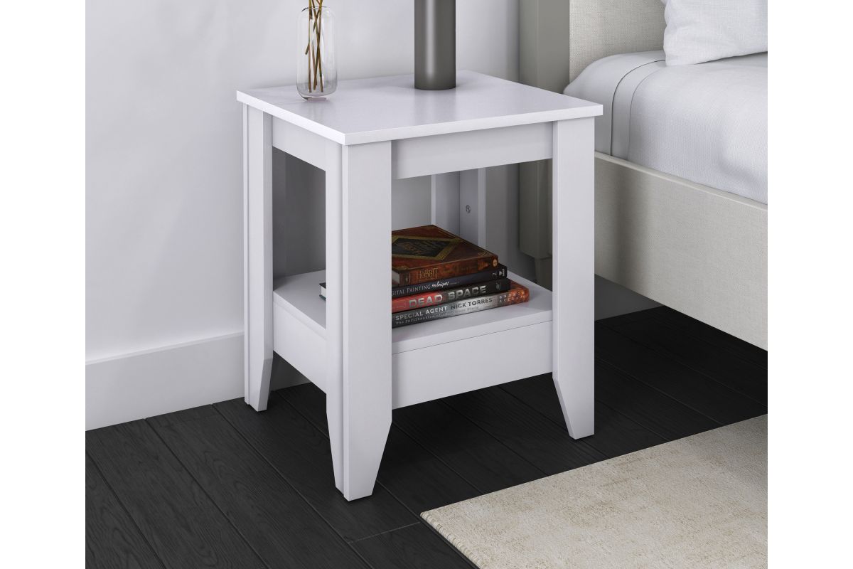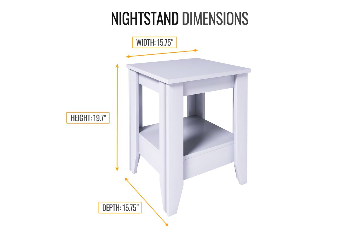 The Arona Classic Open Storage Nightstand offers a quick solution for bedside storage in a simple design. This bedside table features a spacious top surface and a single lower shelf to store your nighttime necessities. Use a cloth storage bin in the lower cubby for extra hidden storage. This wood finish nightstand offers a classic accent to your bedroom or guest room. The Arona bed table is made from durable hardwood MDF with a laminate wood grain finish. Available in Black, White, Cherry, and Farmhouse Gray. Ships flat in 1 box via UPS/FedEx for easy transport, especially in small spaces. Assembles in 30 minutes. Assembly is required.