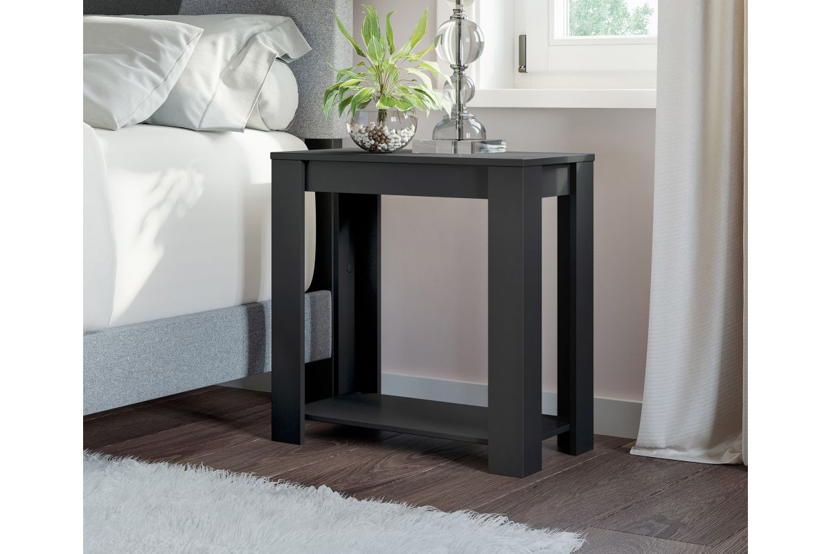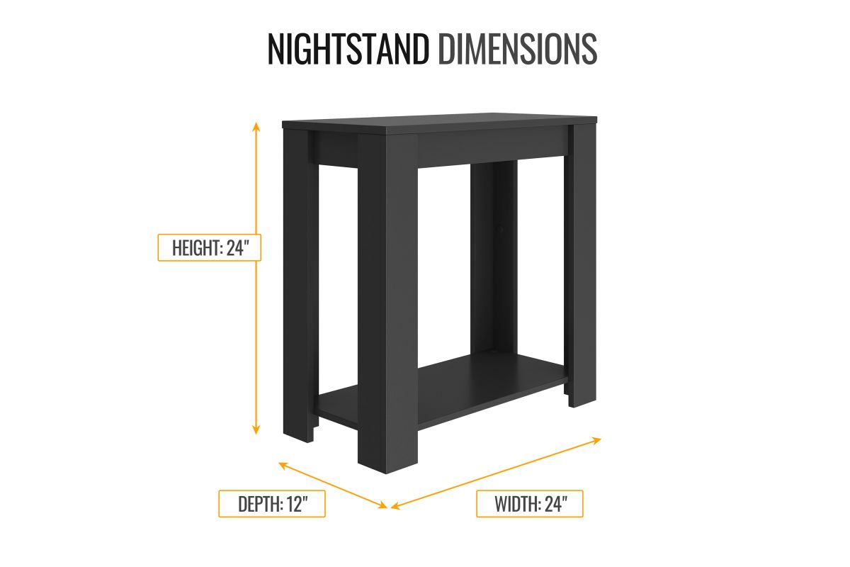 Add rustic farmhouse style to your bedroom with the Boca Wood Nightstand. This bedside table with storage combines a simple, timeless design with a natural wood grain finish, and its durable MDF construction means spills and stains wipe right off. A single lower shelf gives this nightstand with open storage plenty of space for your bedside reading. Add in a decorative fabric bin to turn your open display into additional hidden storage. The Boca bedroom nightstand offers a spacious top surface to fit your table lamp, smartphone, glasses, and alarm clock. At 24 inches high, this single shelf nightstand is the perfect match for low profile platform beds. Each storage nightstand ships flat to your door in one convenient box. Finished in Barnwood Gray, the Boca nightstand with open storage is the easiest way to add function and style to your bedroom. Assembly is required.