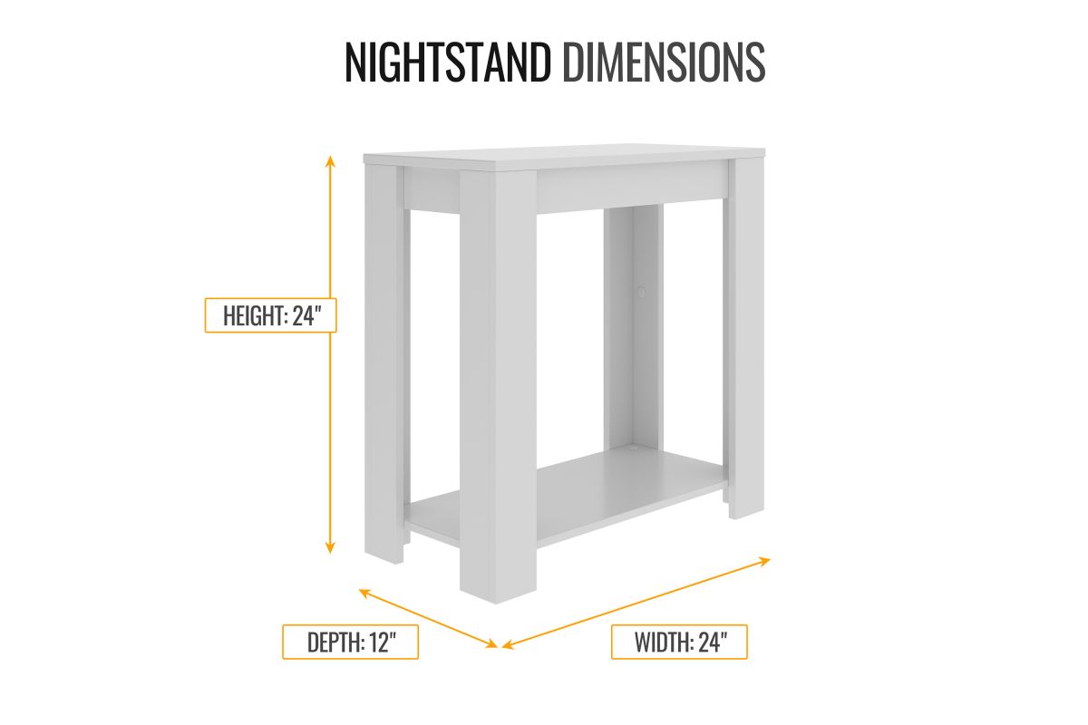 Add rustic farmhouse style to your bedroom with the Boca Wood Nightstand. This bedside table with storage combines a simple, timeless design with a natural wood grain finish, and its durable MDF construction means spills and stains wipe right off. A single lower shelf gives this nightstand with open storage plenty of space for your bedside reading. Add in a decorative fabric bin to turn your open display into additional hidden storage. The Boca bedroom nightstand offers a spacious top surface to fit your table lamp, smartphone, glasses, and alarm clock. At 24 inches high, this single shelf nightstand is the perfect match for low profile platform beds. Each storage nightstand ships flat to your door in one convenient box. Finished in Barnwood Gray, the Boca nightstand with open storage is the easiest way to add function and style to your bedroom. Assembly is required.
