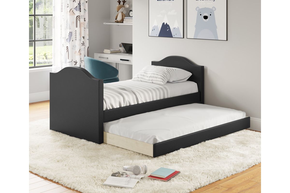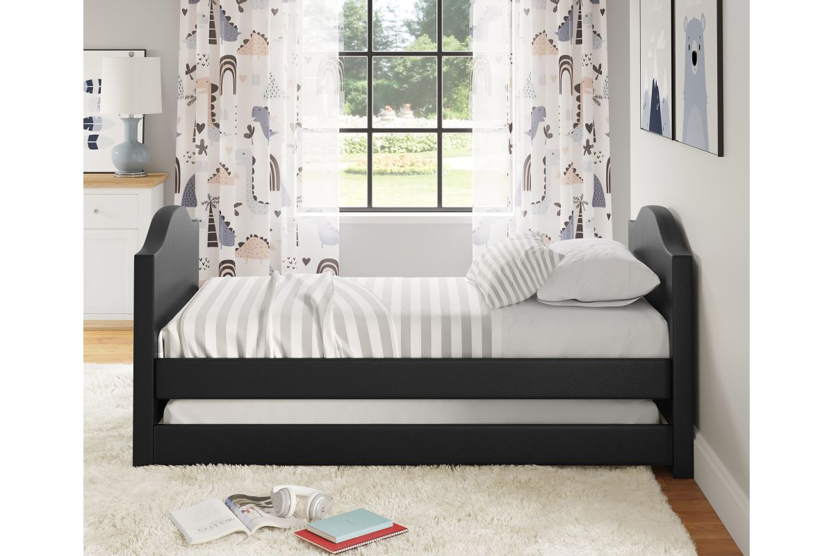 - Space-Saving Twin Daybed with Trundle: Maximize room space with this stylish black faux leather twin daybed featuring a wheeled trundle�perfect for sleepovers, guest rooms, or kid�s bedrooms.