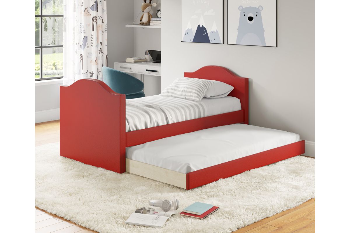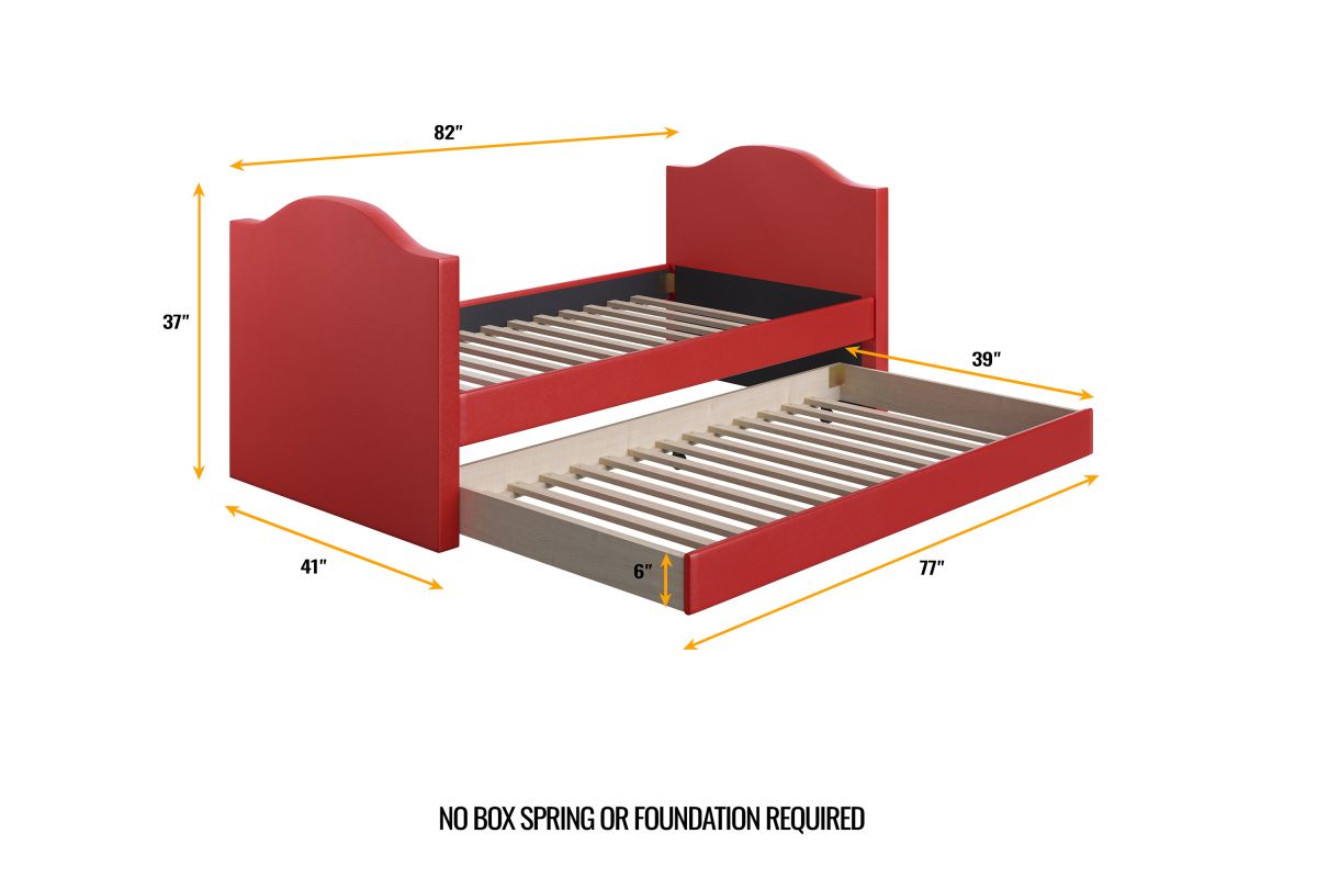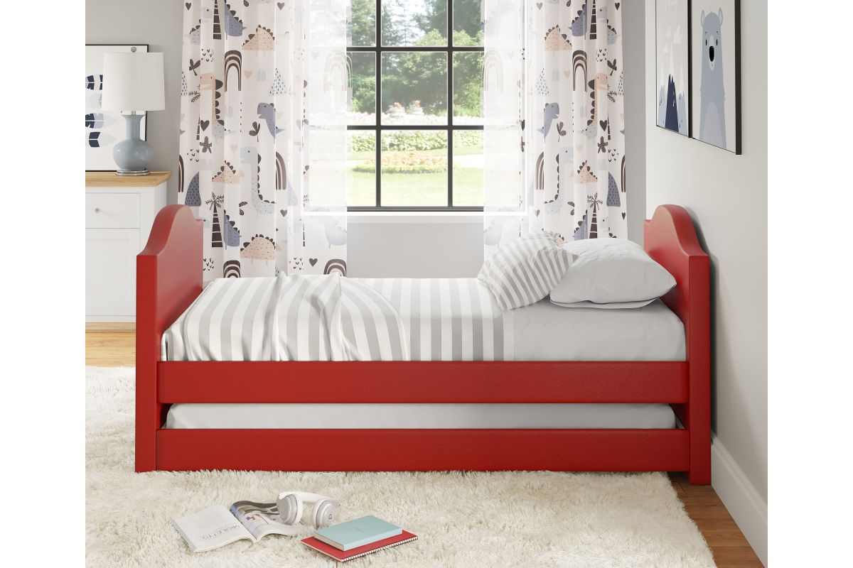 Boyd Sleep Messina Red Faux Leather Twin Size Daybed with Trundle, No Box Spring Needed - Upholstered Sleeper Bed Frame with Pull-Out Trundle for Kids, Teens, Guests, Space-Saving Design. Assembly is required.