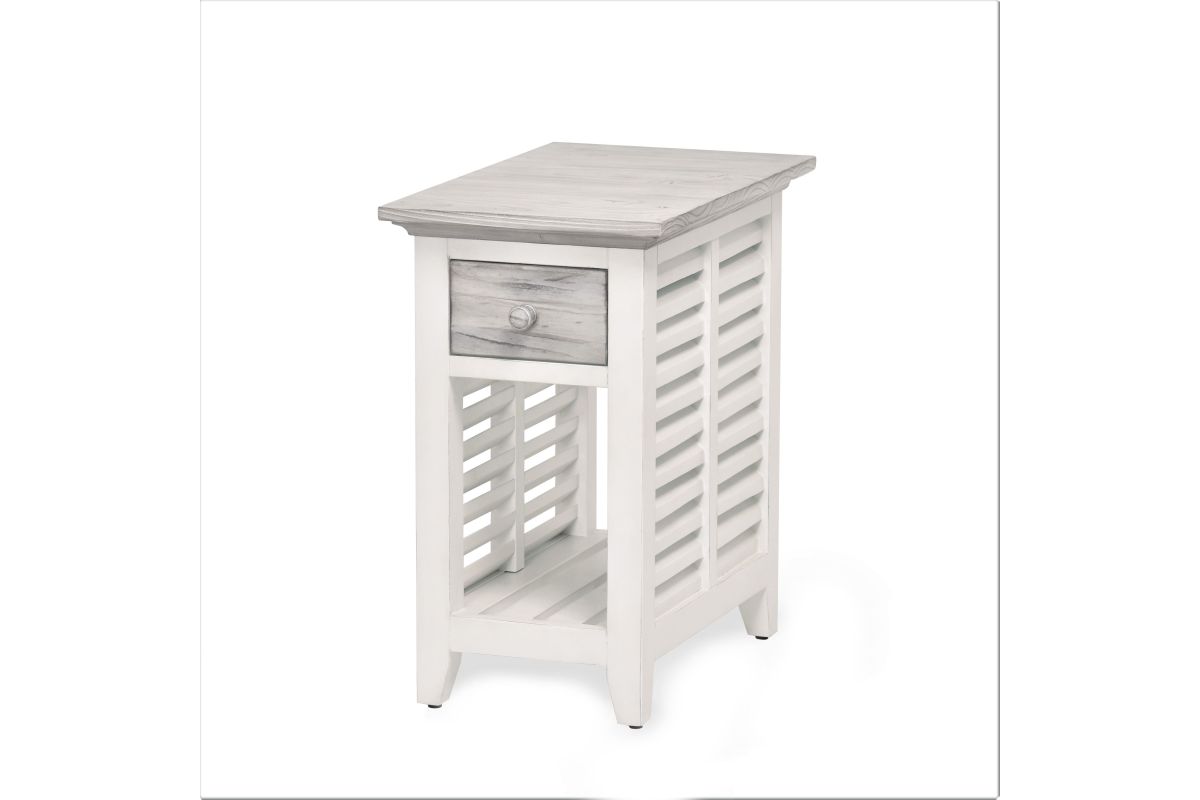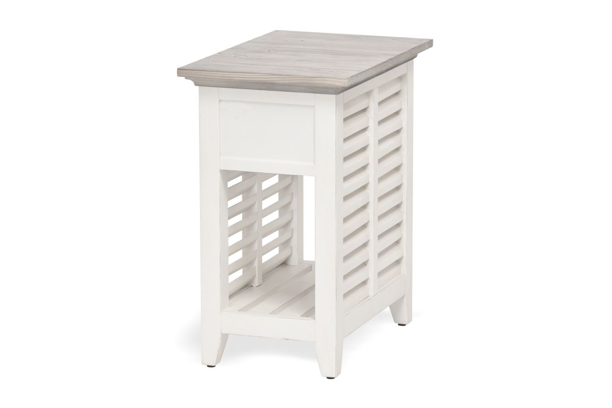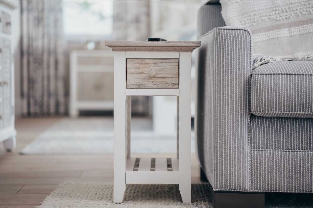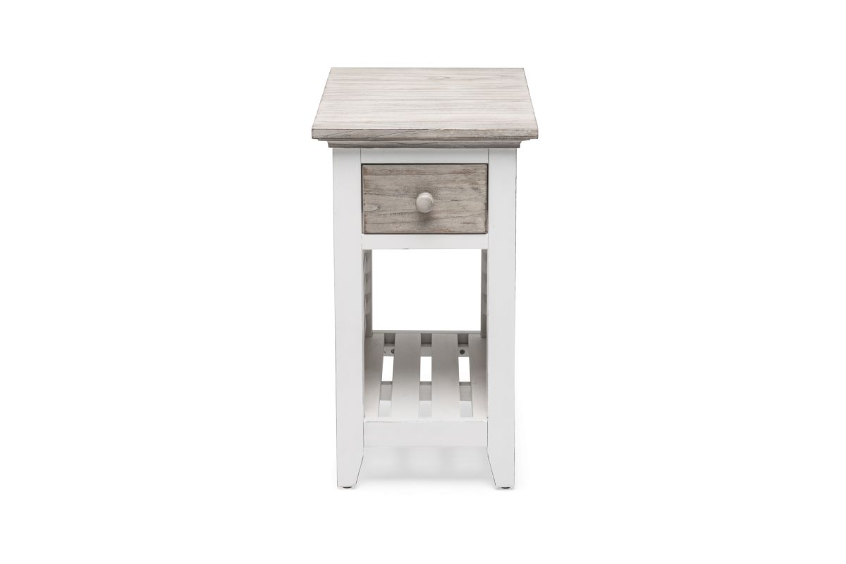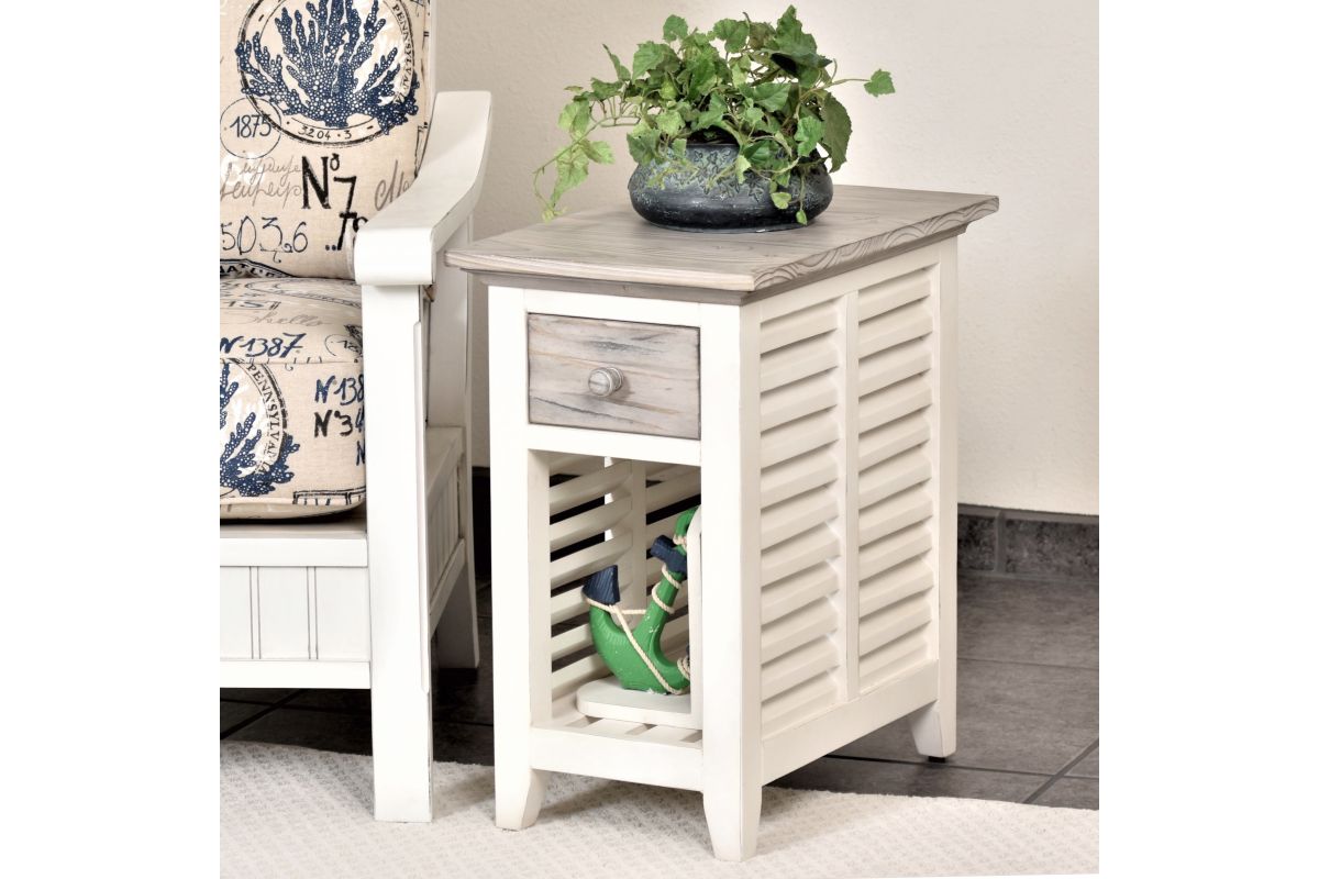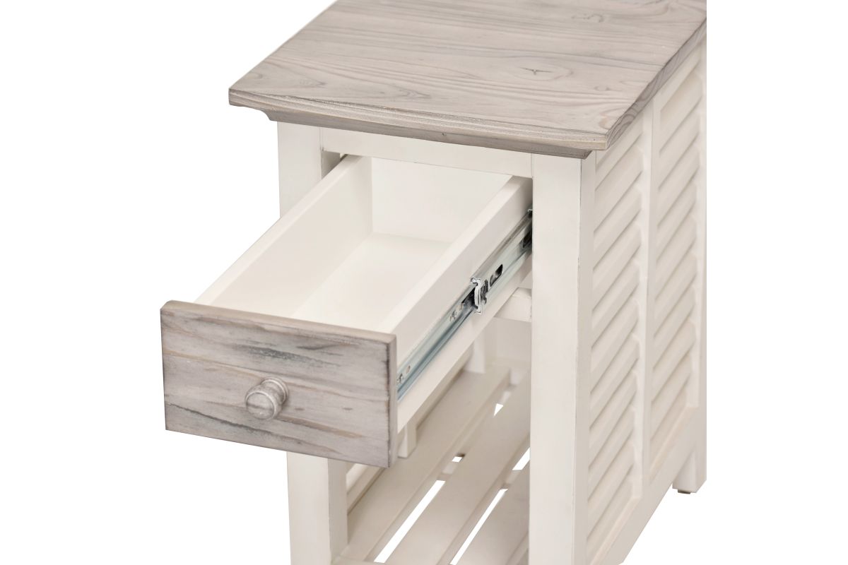 Luxury and style meet with the Islamorada Chairside Table. Crafted from solid Mindi wood, it features dovetail joint drawers with full extension ball bearing glides and beautiful water-based, eco-friendly finish. With its slightly distressed wood and finish, this piece is sure to bring warmth and sophistication to your living room. Ready to be admired!