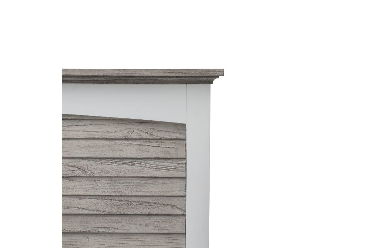 The Islamorada collection has an elegant two-tone combination. The grey finish is the result of a multi-step process that lightly distresses the wood creating a beautiful depth of color and texture, complemented by gently-glazed white on the frame to give your room a character like no other!