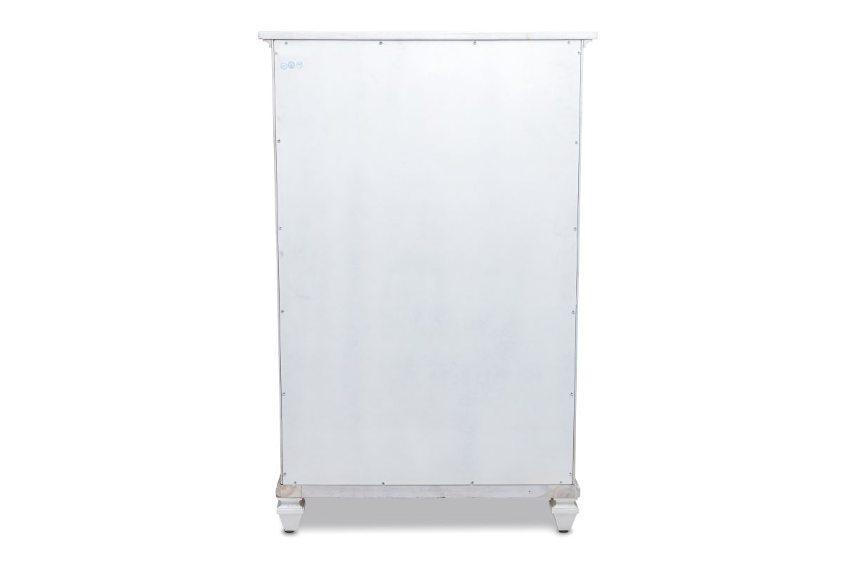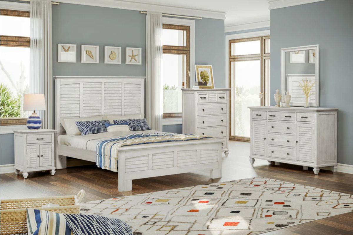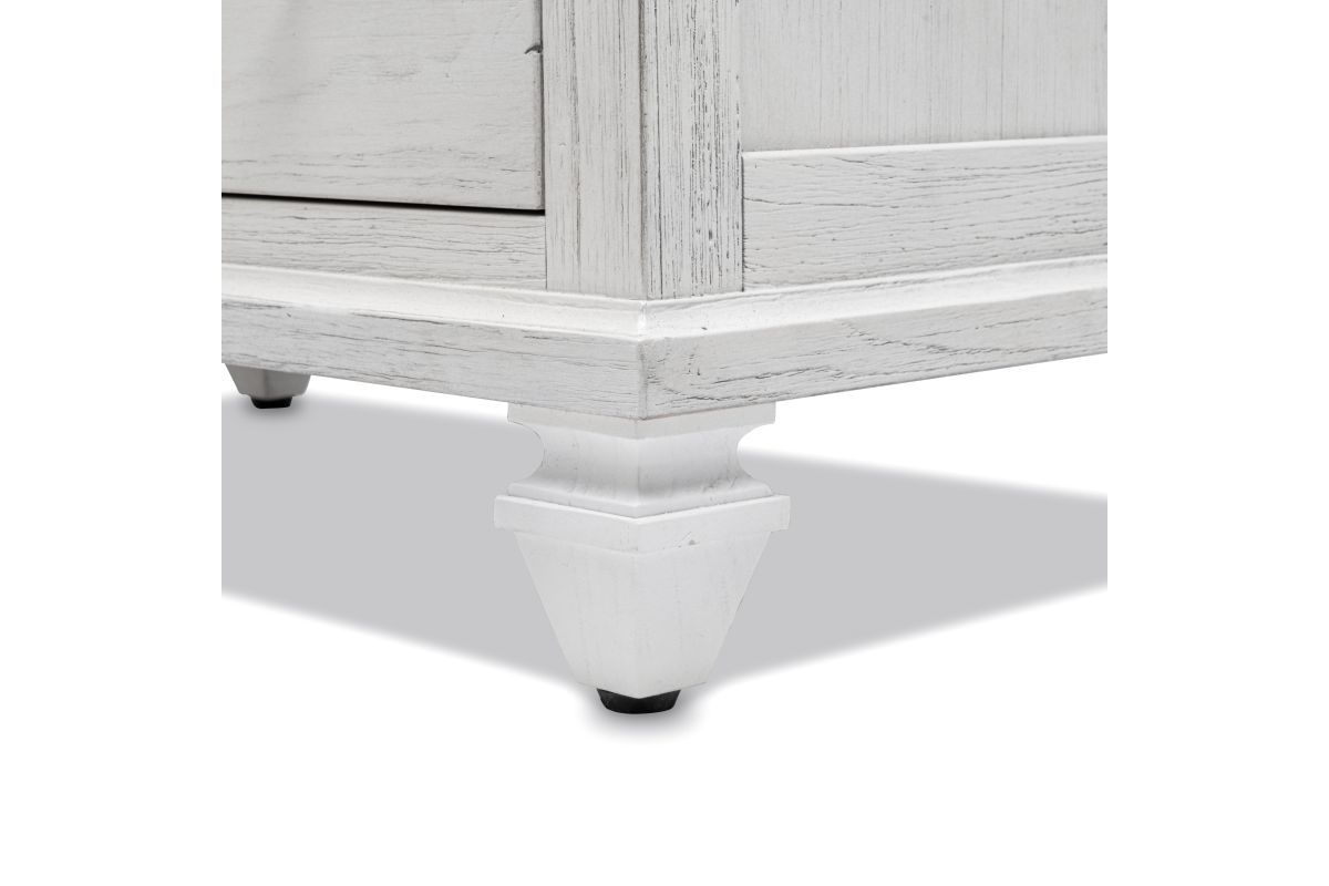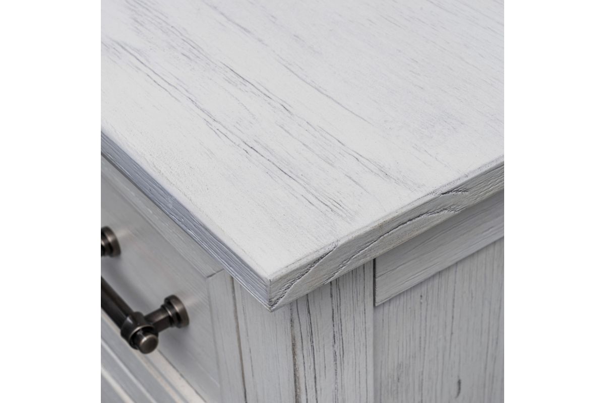 Transform your bedroom into a serene and stylish haven with the Surfside 5 Drawer Chest. Featuring a distressed finish, this classic chest is crafted from solid Mindi Wood, delivering durability and sophistication. Each drawer features dovetail joints and full extension glides, while the brushed painted exterior provides a timeless, elegant look. Unpack, assemble and enjoy the peaceful style of the Surfside 5 Drawer Chest. Assembly is required.