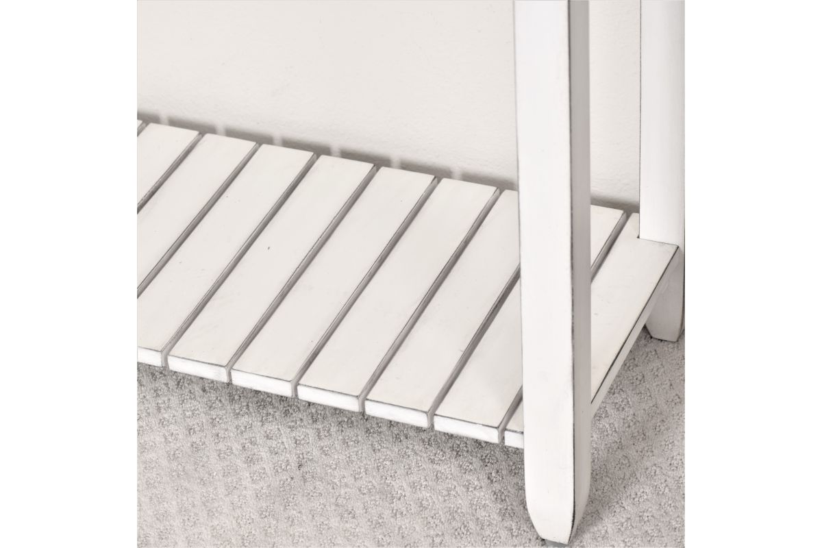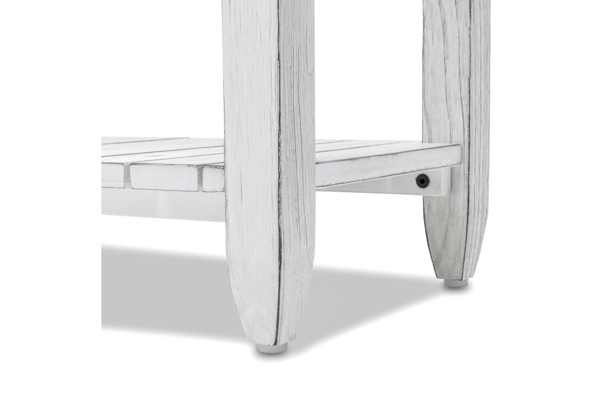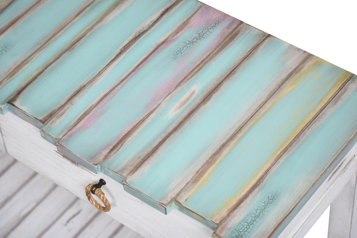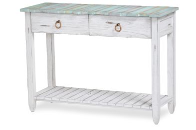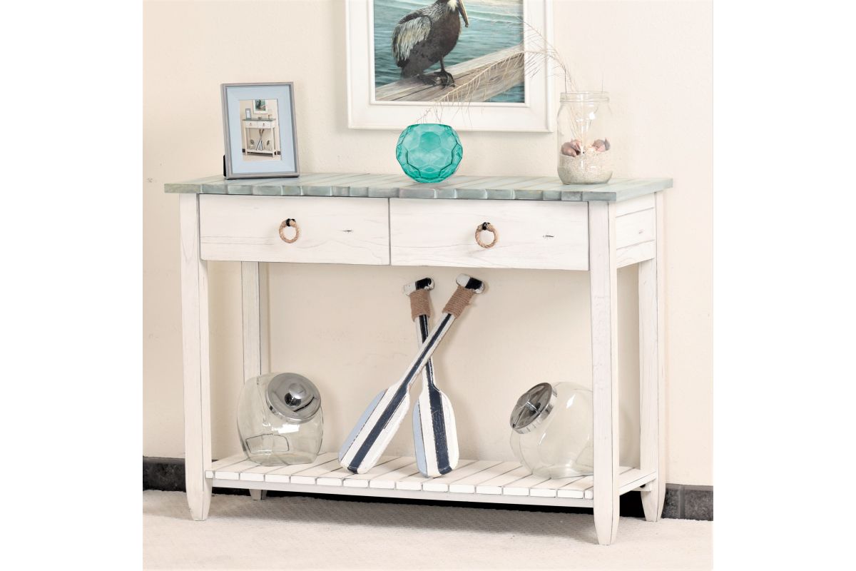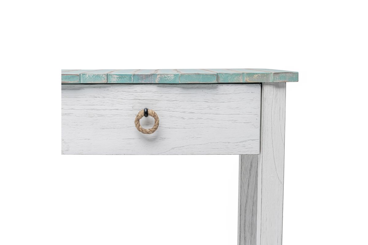 The Picket Fence Console Table is a stunning piece of furniture that will elevate any space. Featuring a distressed finish and natural rope pulls, this table is made with kiln-dried, solid Mindi Wood and White Cedar, ensuring its beauty and durability. Dovetail drawers provide added storage while full extension ball bearing drawer glides make opening and closing easy. Transform your entryway with this timeless piece.