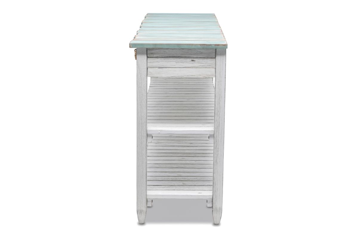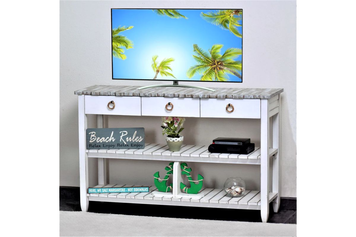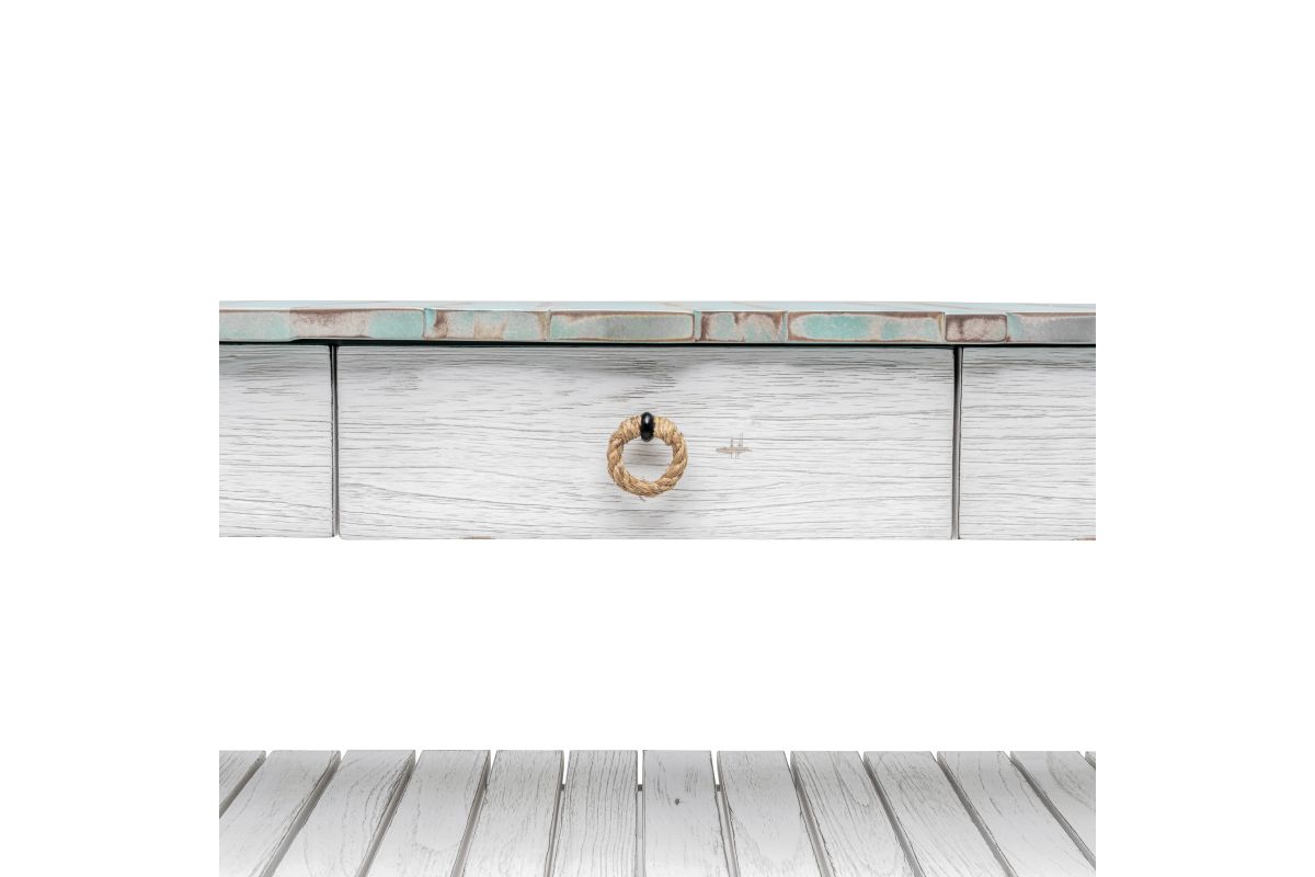 Add timeless modern style to any living space with the Picket Fence End Table. Its Mindi Wood and White Cedar frame and distressed finish give it a stylish yet rustic feel. The drawer is built with dovetail joints and full extension ball bearing drawer glides for easy storage, with ring pulls made of natural rope. This end table is sure to become a staple in any home!