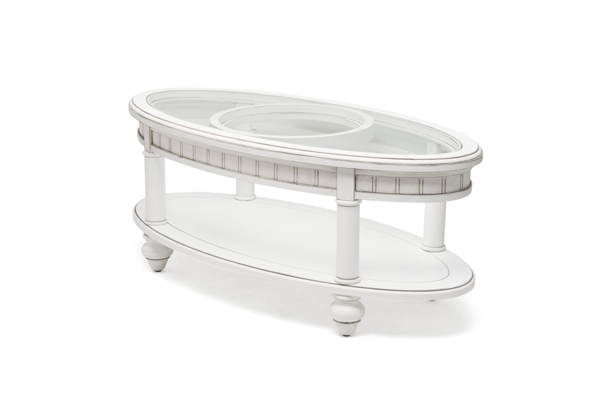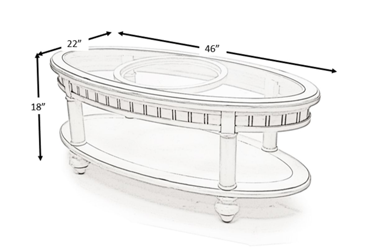 Add a timeless touch to your living room with the Monaco Oval Coffee Table, crafted from kiln-dried solid wood and finished in a light glaze and distressed, white-painted exterior. With easy assembly (all necessary hardware included) and a tempered glass top, this coffee table is a classic and stylish choice that will enhance any home.