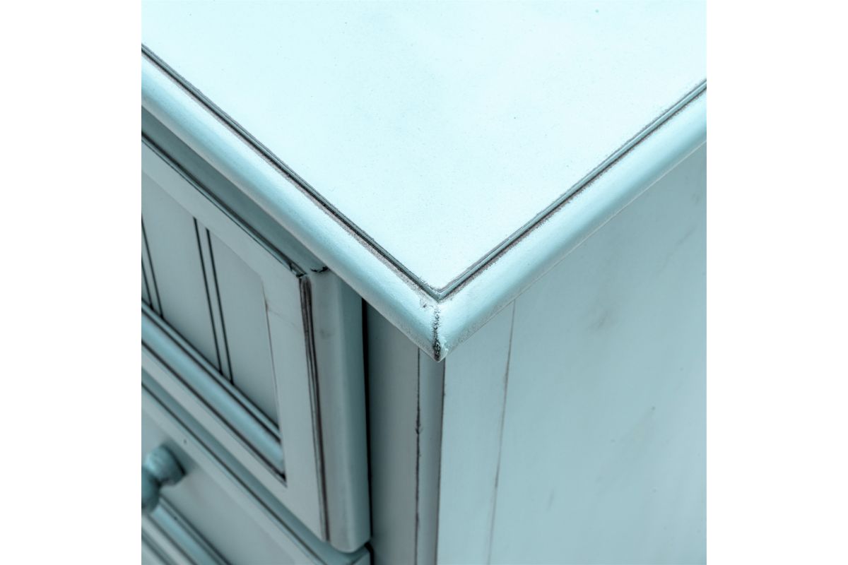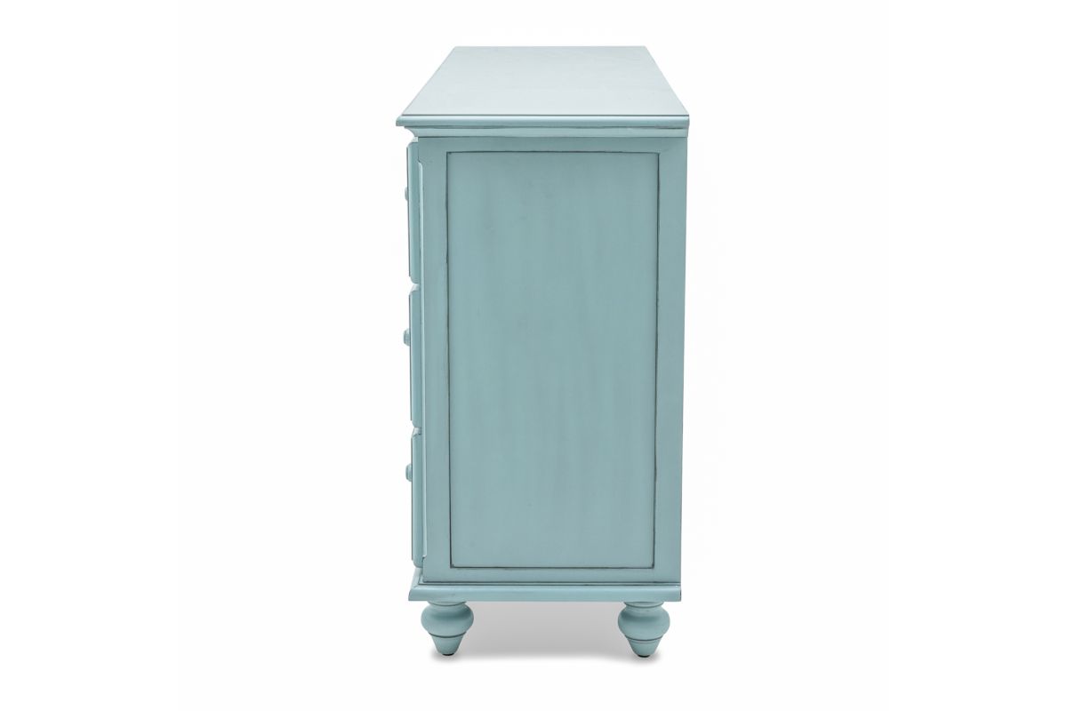 This Monaco 7 Drawer Dresser is the perfect addition to your modern home. With its light glaze finish, kiln dried solid wood frame and Mindi Wood (White Cedar) construction, you will appreciate its stylish distressed look and timeless elegance. Enjoy the convenience of the full extension ball bearing drawer glides, wooden drawer knobs and hassle-free setup, adding a touch of style to your bedroom.