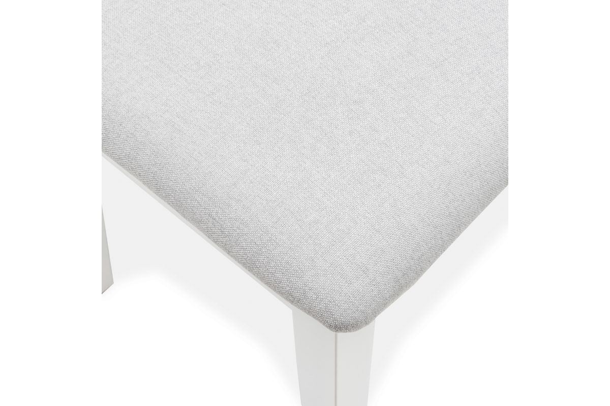 - Stocked and shown in Blanc finish on the frame and Gray fabric