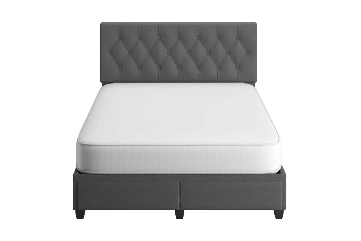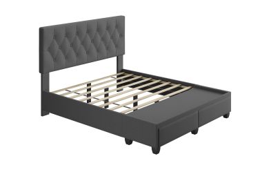 Timeless and functional, this upholstered storage platform bed provides 2 large storage drawers to help keep your space organized. Euro side glides on the drawers ensure smooth opens every time. The headboard features classic button-tufting and the bed is completely upholstered and slightly padded for a premium look and feel.