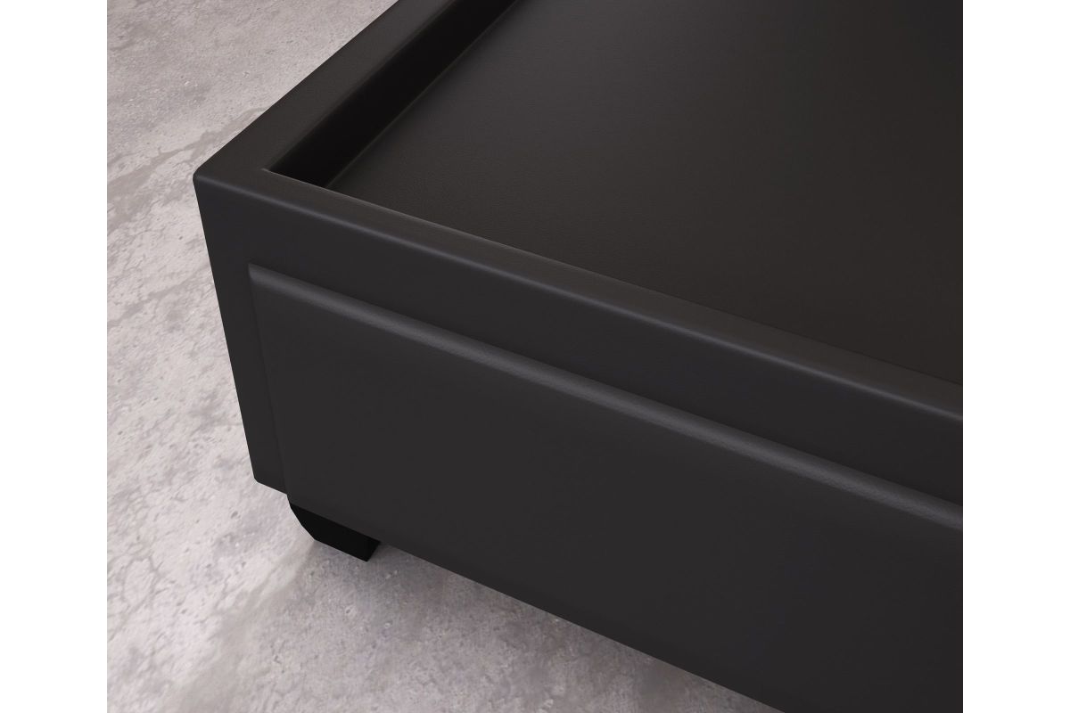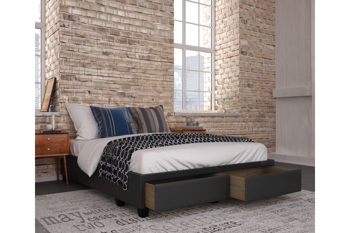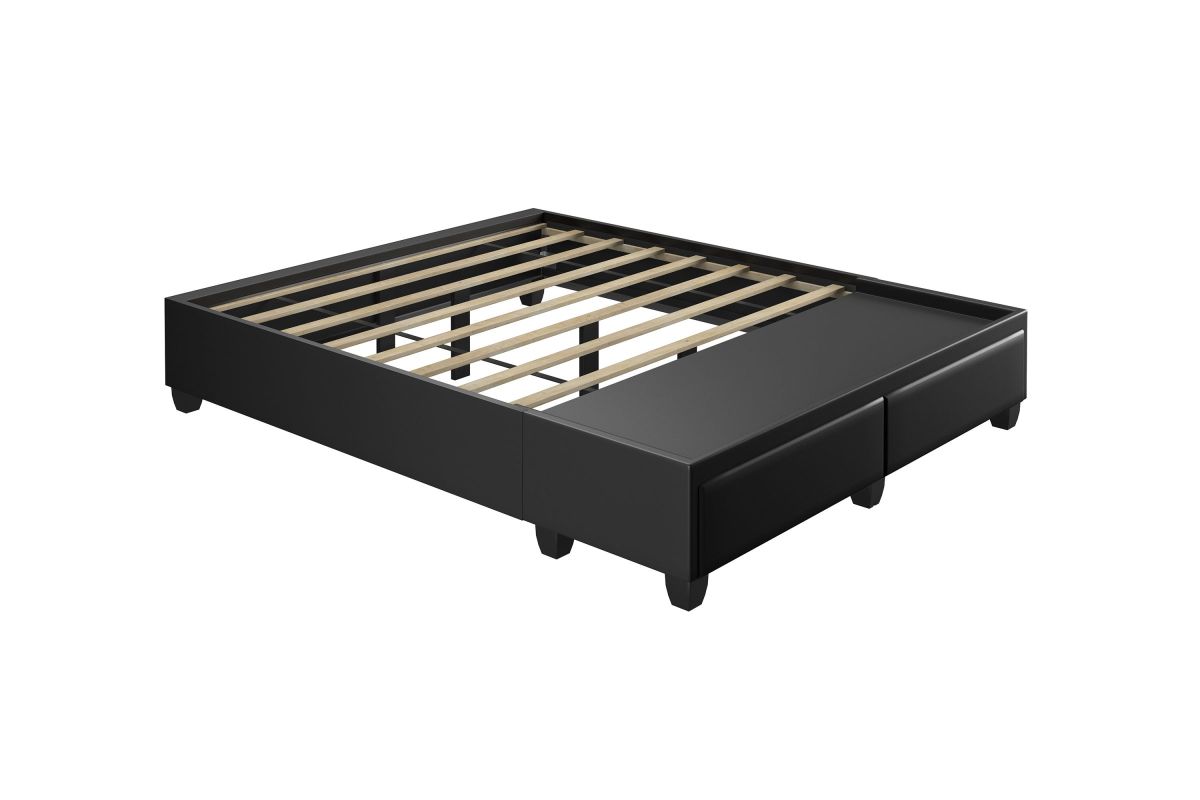 Sleek and modern, this upholstered storage bed base provides 2 large storage drawers to help keep your space organized. Euro side glides on the drawers ensure smooth opens every time. There is no headboard on this bed base, which opens up options for a minimalist appearance, while maintaining support and storage function. All sides are upholstered and slightly padded for a premium look and feel.