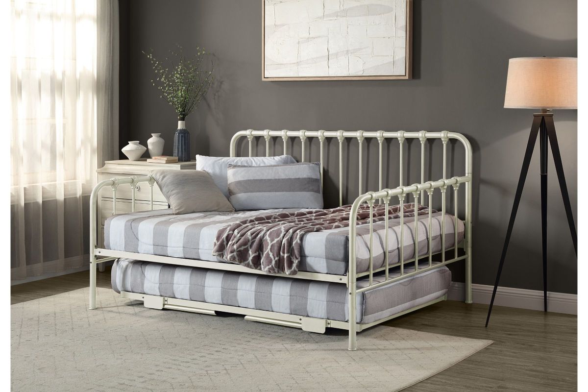 Brighten your space with the timeless charm and smart functionality of the Full Size Daybed with Twin Trundle in White. Featuring a clean, modern design and a crisp white finish, this daybed blends seamlessly with a variety of décor styles—from coastal and farmhouse to minimalist and contemporary. Assembly required.