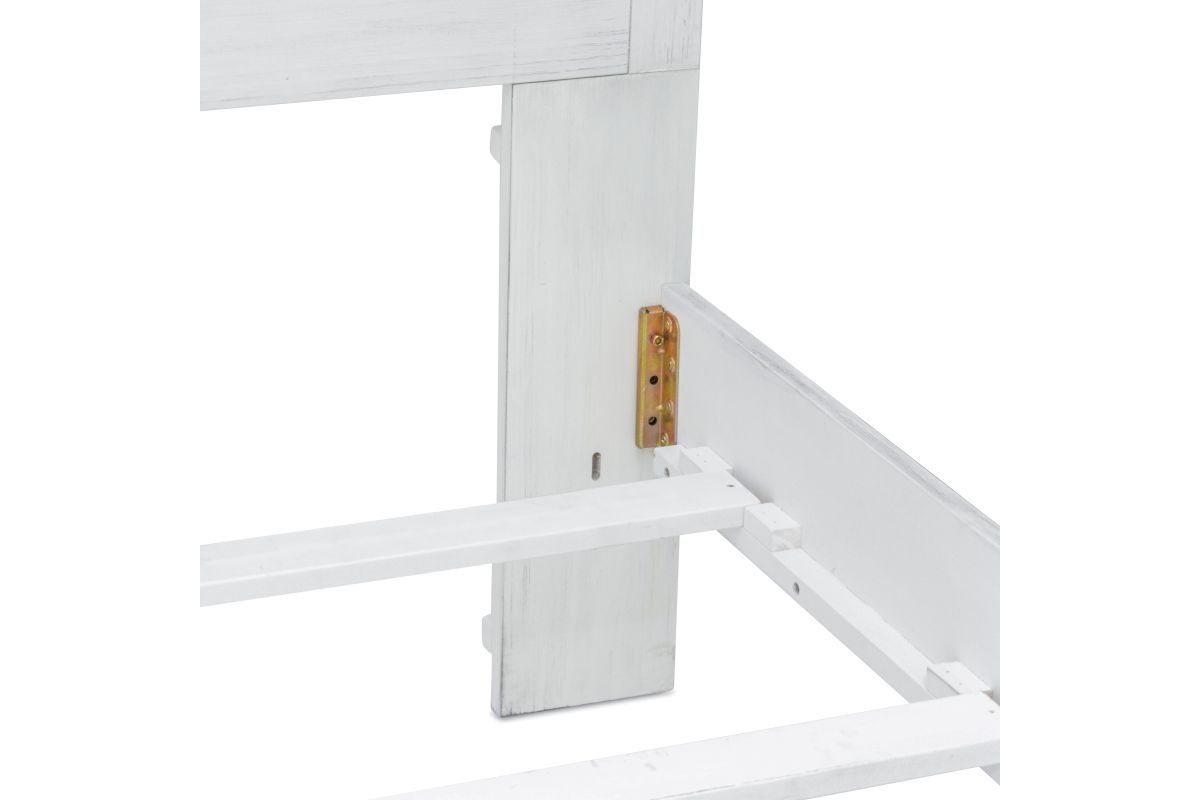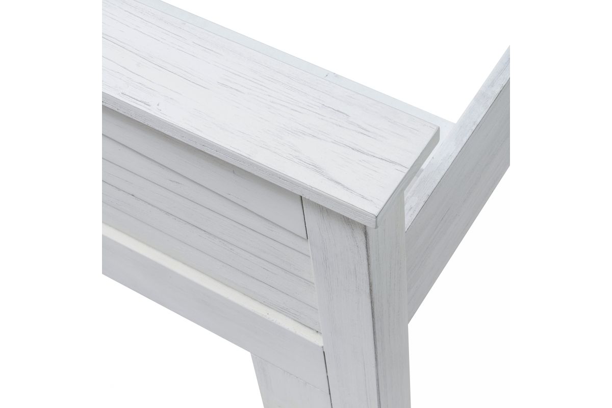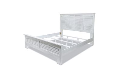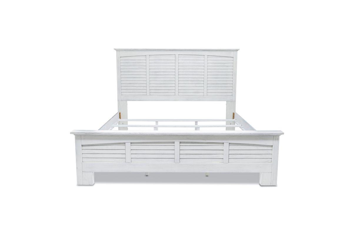 Sleep soundly in the exquisitely crafted�Surfside�Bed. Made from Mindi Wood and finished with a distressed white paint, this bed is sure to bring a sophisticated touch to your bedroom. Available in both Queen and King sizes, the headboards easily attach to the footboard and side rails to complete the look - no tools needed! Enjoy the stylish look and long-lasting durability of this luxury bed in your home. *Mattress not included. Assembly is required.