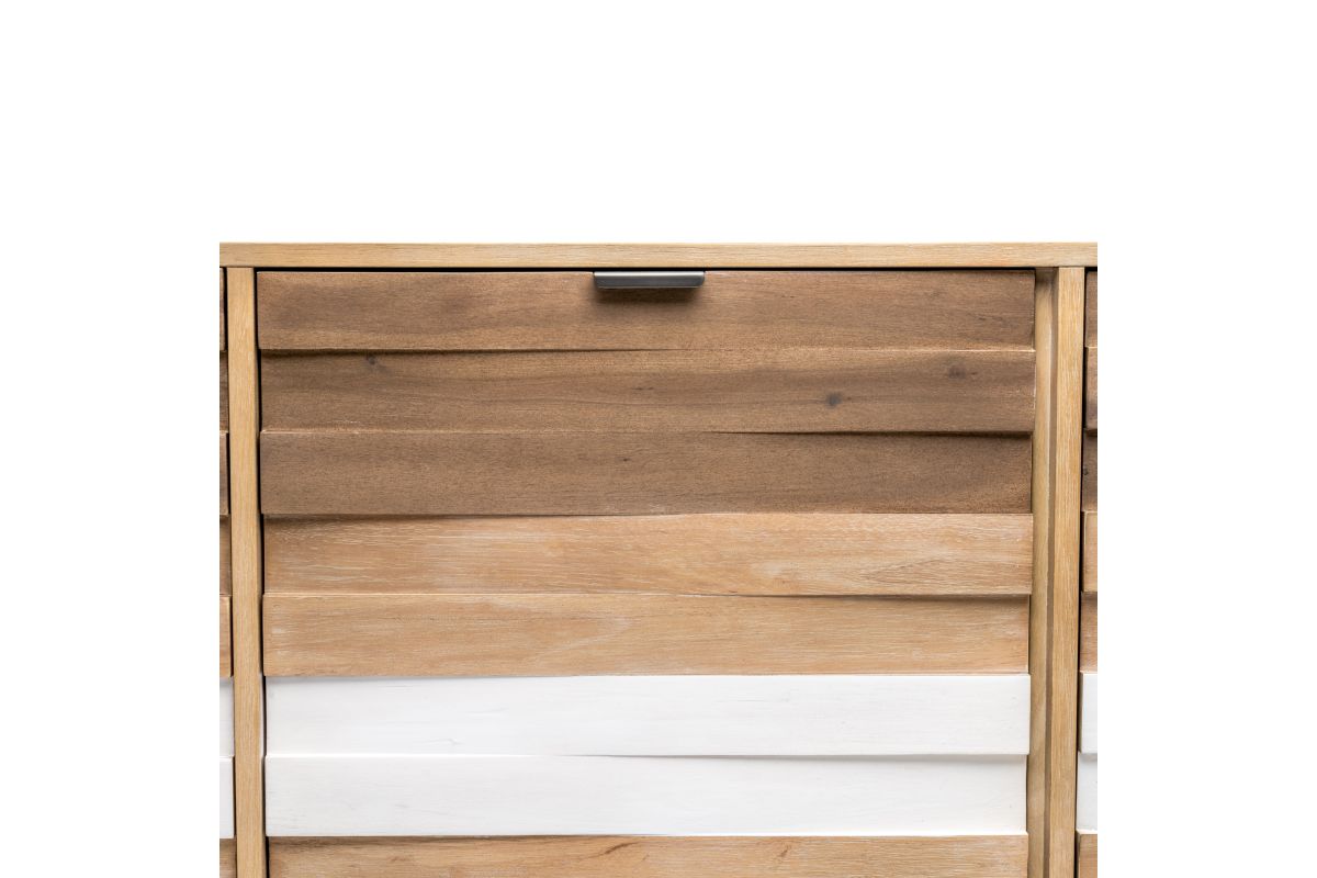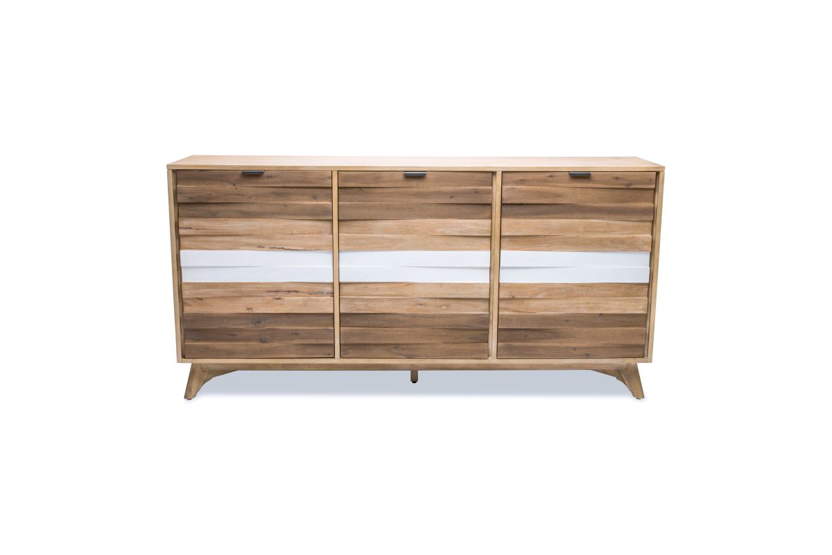 Experience the rustic beauty of the Laguna 3-Door Credenza. A handcrafted masterpiece of wood featuring a stunning tri-color finish that captures the spirit of the outdoors. With its beautiful accents and spacious design, it's sure to add a modern touch to any room. Make a statement today! Assembly is required.