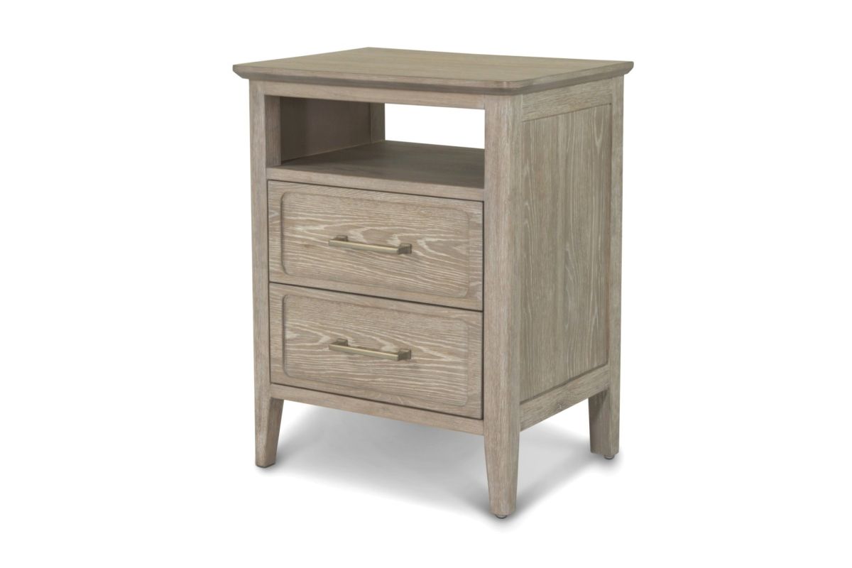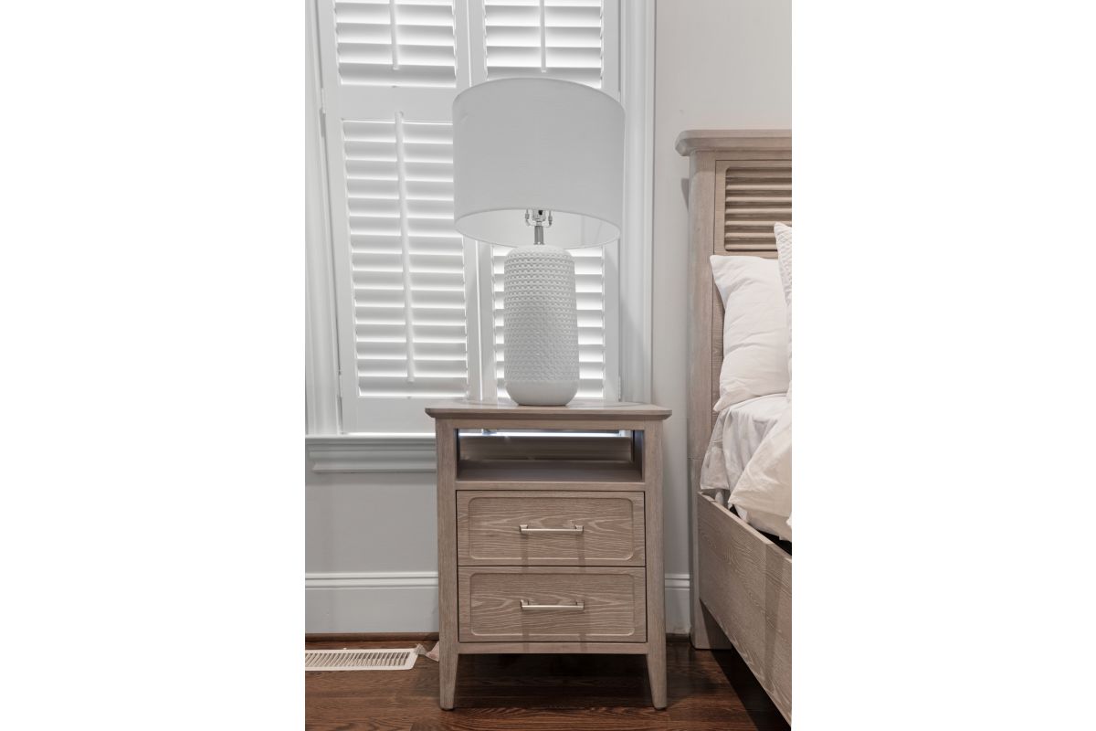 Complete your bedroom suite with this solid white oak nightstand, crafted with the same attention to detail and premium materials as the coordinating bed. Featuring a rich glazed driftwood finish, this nightstand adds warmth and sophistication to your space. Thoughtfully designed with both beauty and utility in mind, it includes full-extension ball-bearing drawer glides for effortless access and a convenient USB charging port discreetly located on the back.