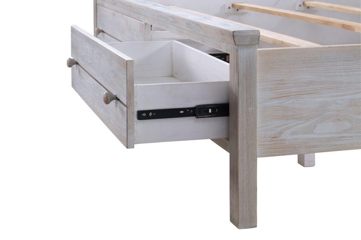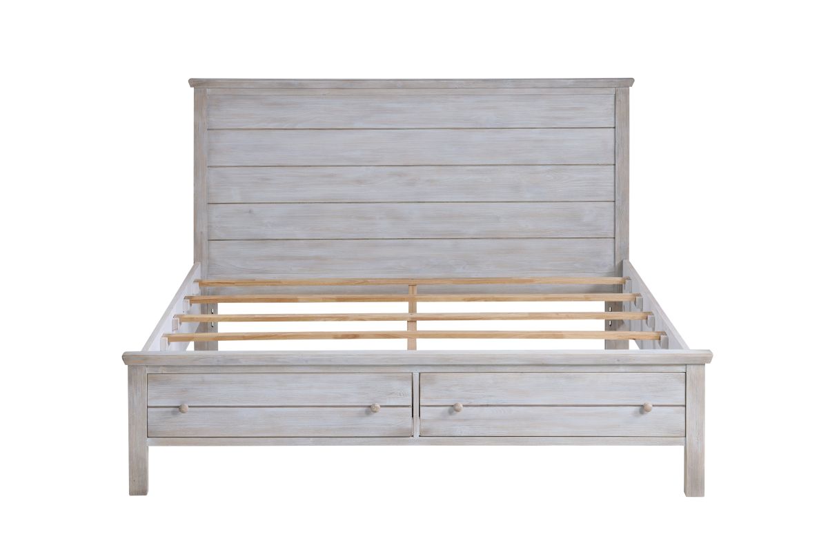 Combine classic style with everyday functionality in the Geneva King Storage Bed. Expertly crafted from solid wood, this bed features a clean, paneled headboard and a low-profile footboard with built-in storage drawers—perfect for keeping bedding, clothing, or seasonal items neatly tucked away. With its generous king size and durable construction, the Geneva bed delivers both comfort and convenience in one sophisticated package. Includes the headboard, footboard and side rails.