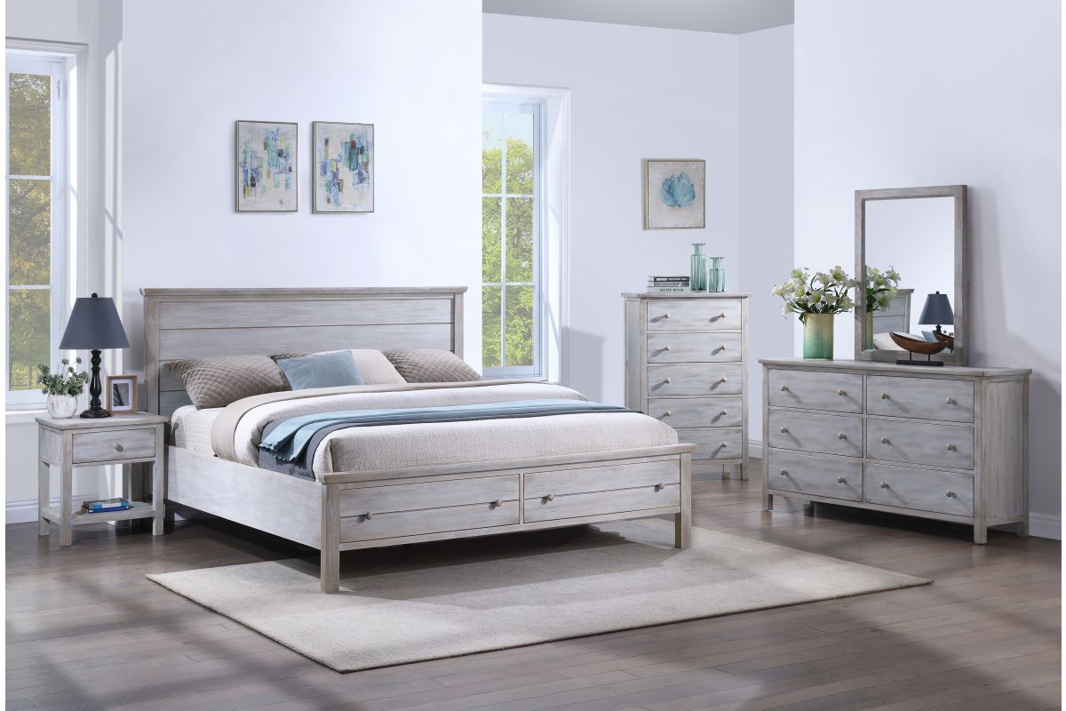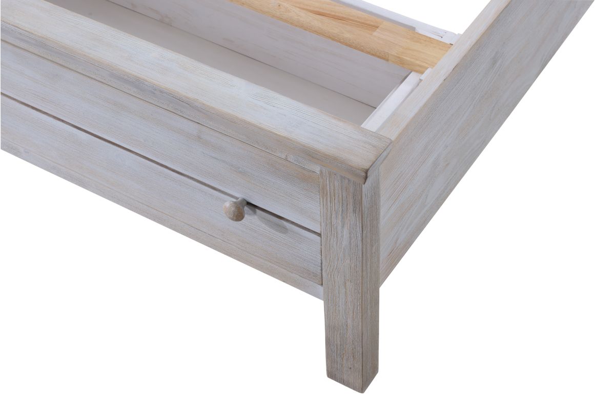 Maximize your bedroom space without compromising on style with the Geneva Queen Storage Bed. Crafted from solid wood for strength and longevity, this bed features a clean paneled headboard paired with spacious built-in drawers—ideal for storing linens, clothes, or extra bedding. Its timeless design and warm finish bring a cozy, coastal-inspired touch to any bedroom. Includes headboard, footbaord and side rails. Assembly required.