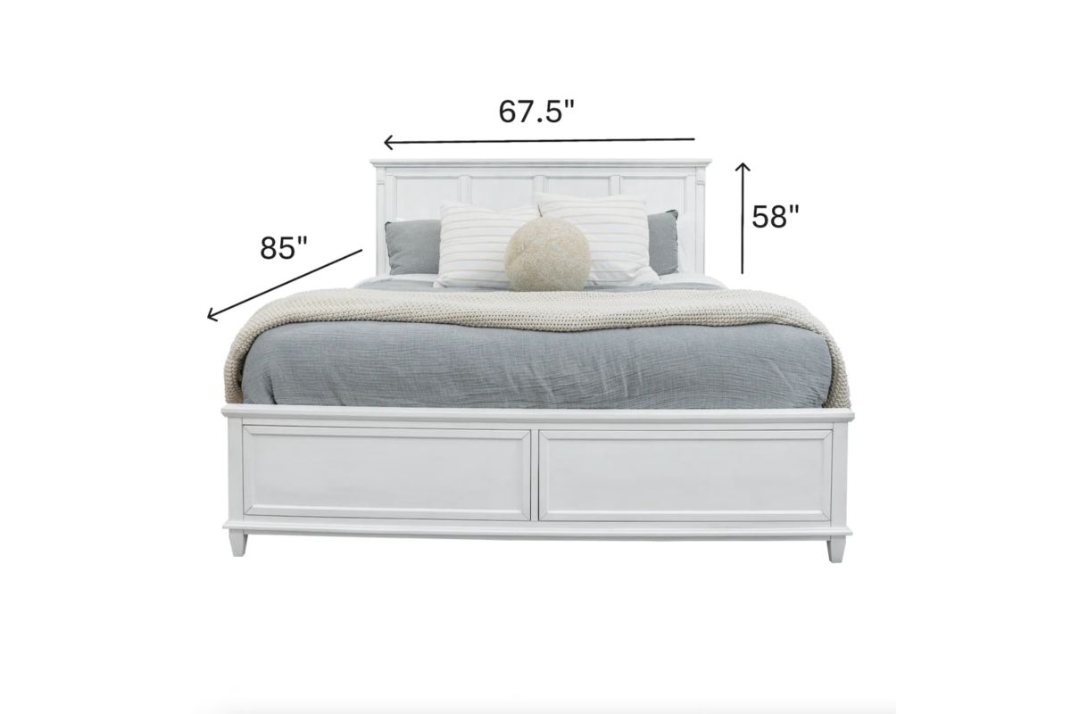 Refresh your bedroom with the crisp charm of this Queen bed, crafted from solid poplar wood and finished in a Fresh White tone with a Soft Grey Glaze. The elegant silhouette pairs beautifully with both modern and classic interiors, while the 12-step finishing process brings out subtle depth and texture. Complete with a headboard, footboard, and side rails, this bed is built for durability and visual appeal. Designed to be the centerpiece of your space, it offers elevated style with everyday function and long-lasting craftsmanship you can trust.