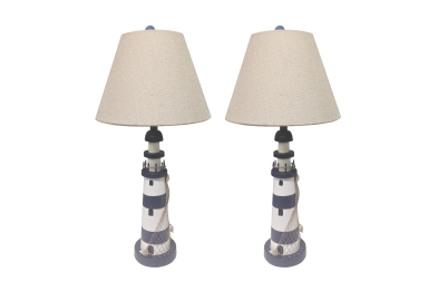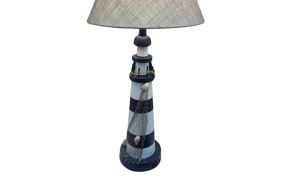 Standing at a stately 30 inches, this lamp commands attention with its lighthouse-inspired base, showcasing a soothing blue and white color scheme that evokes images of pristine coastal waters. Crafted with meticulous attention to detail, the lamp base features intricate lighthouse detailing that lends an authentic touch to your decor.