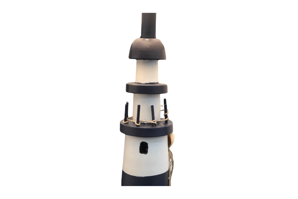 Introducing the 30-Inch Blue/White USB Lighthouse Lamp - a beacon of coastal charm that effortlessly brightens your living space while adding a touch of maritime elegance. This nautical-inspired lamp is designed to capture the essence of coastal living, making it the perfect addition to beachfront homes or those seeking a relaxed seaside ambiance.