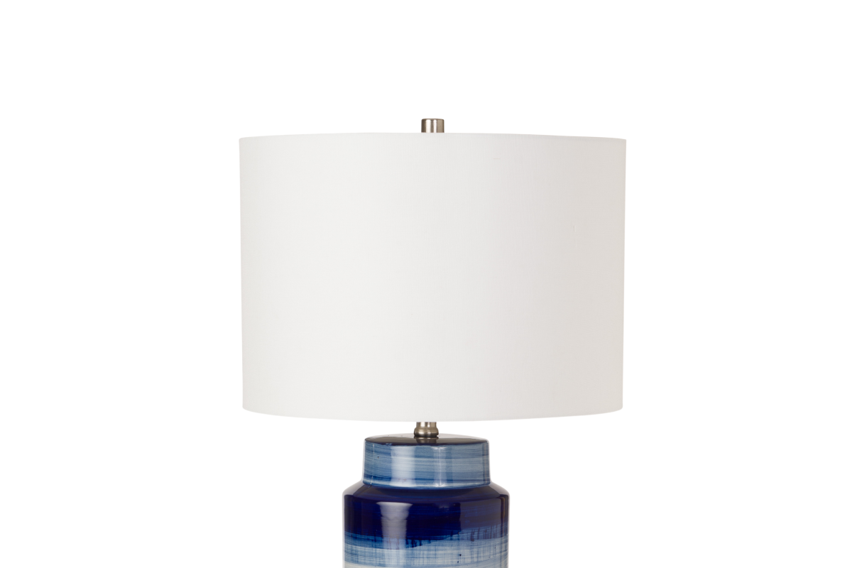 Crowning this coastal beauty is a linen hardback shade that offers a gentle diffusion of light, mimicking the soft coastal breeze. The shade complements the navy base beautifully, adding a touch of sophistication while maintaining a relaxed coastal aesthetic.